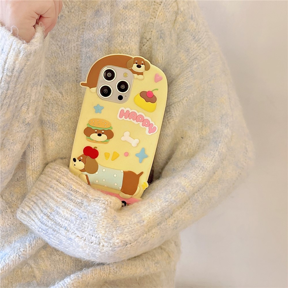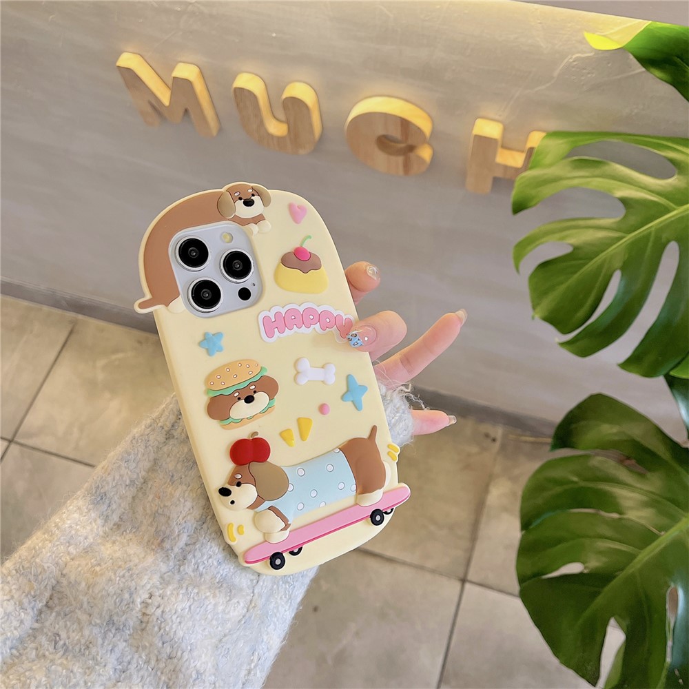 For iPhone 16 Pro Max Silicone Case Cute Skateboarding Dachshund Design Shockproof Phone Back Cover