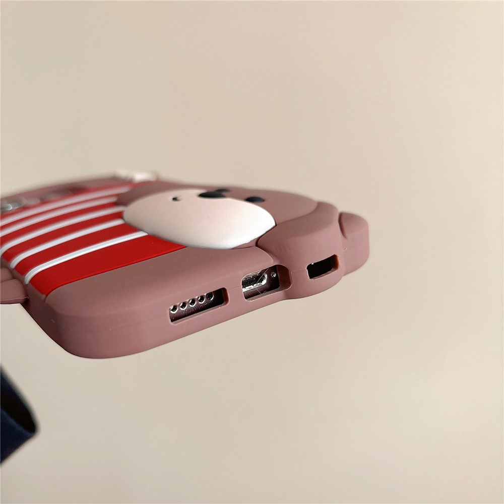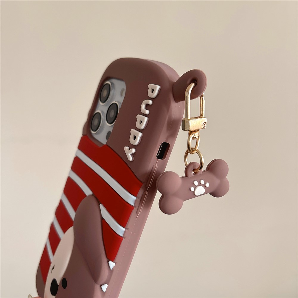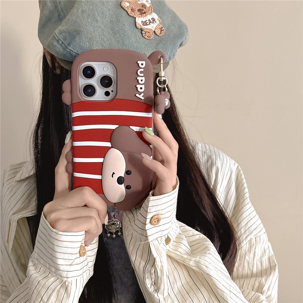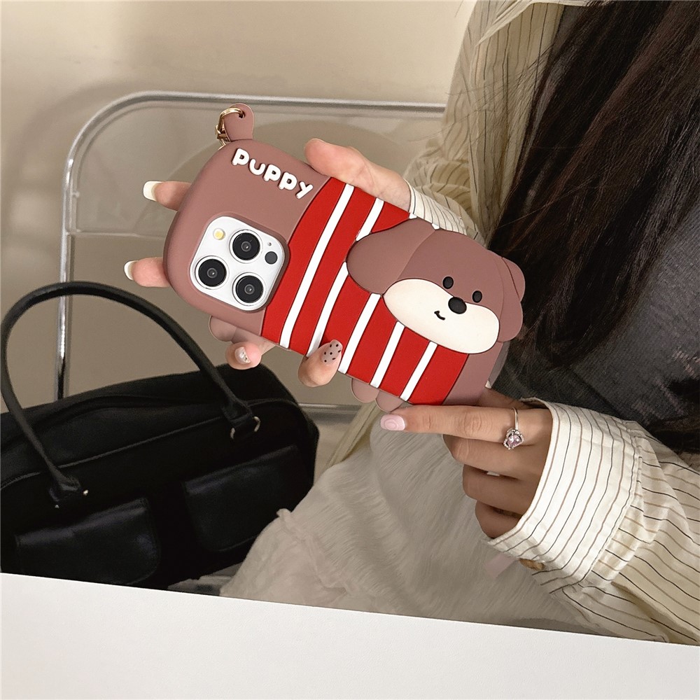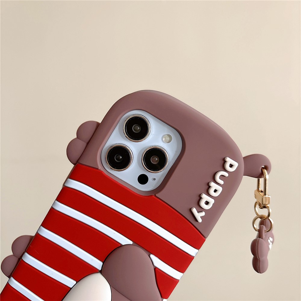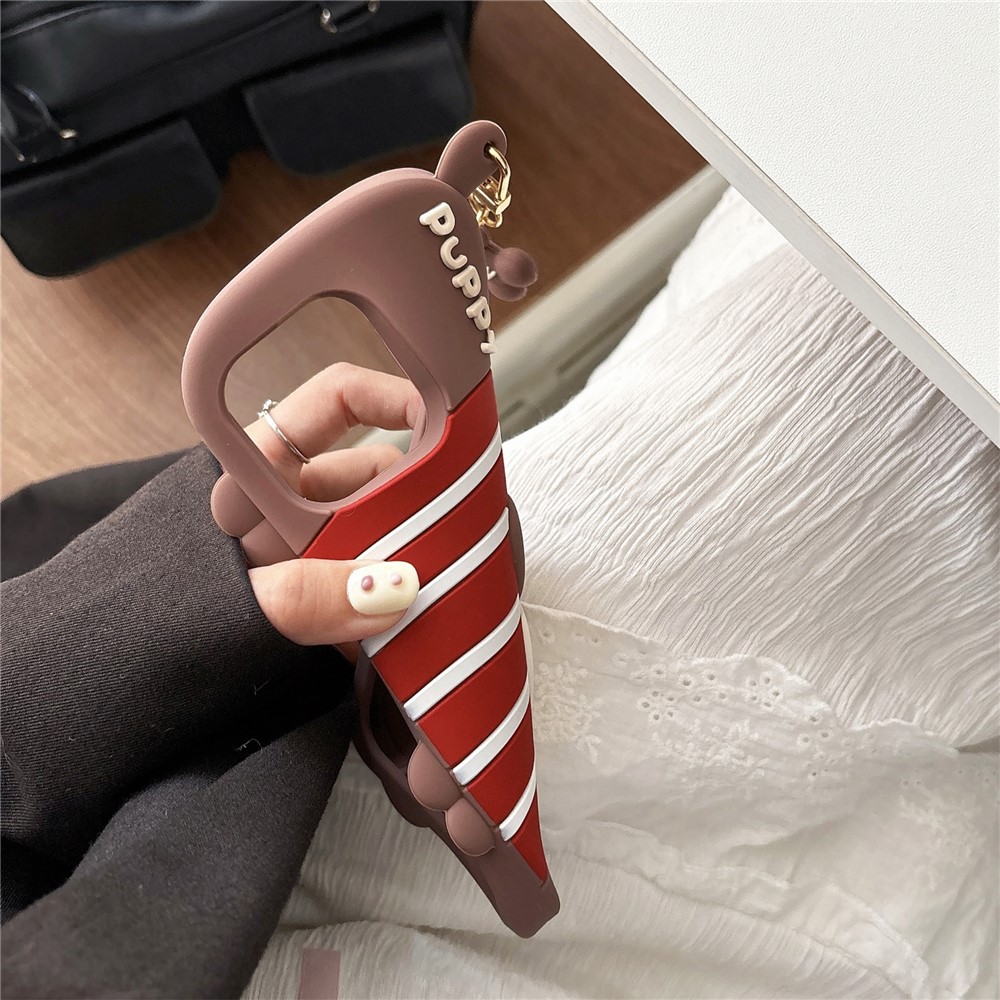 For iPhone 16 Pro Max Silicone Case Cute Striped Dachshund Design Shockproof Phone Back Cover
