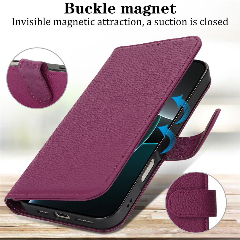 - Premium Material Combination Crafted with a litchi textured genuine cow leather exterior for a premium look and feel, paired with a flexible TPU inner shell that offers excellent shock absorption and long-lasting protection