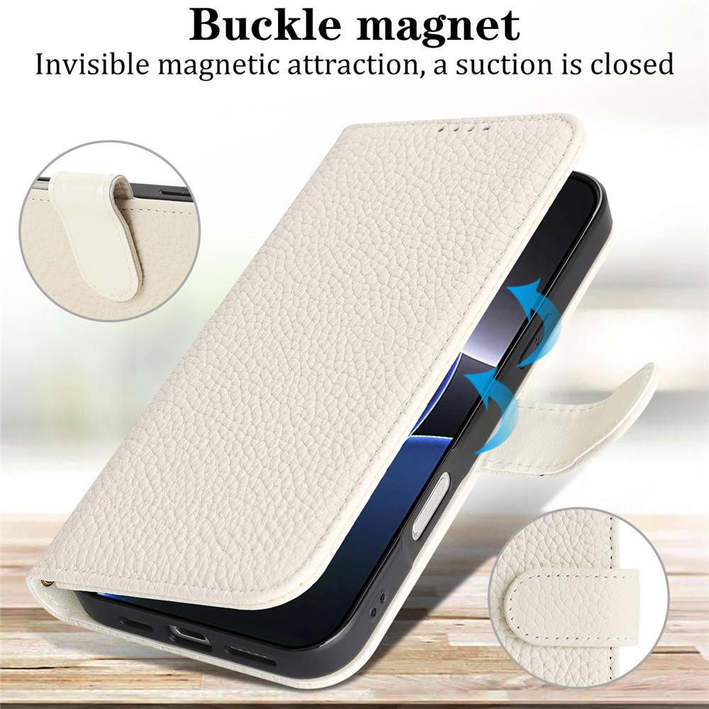 - Premium Material Combination Crafted with a litchi textured genuine cow leather exterior for a premium look and feel, paired with a flexible TPU inner shell that offers excellent shock absorption and long-lasting protection