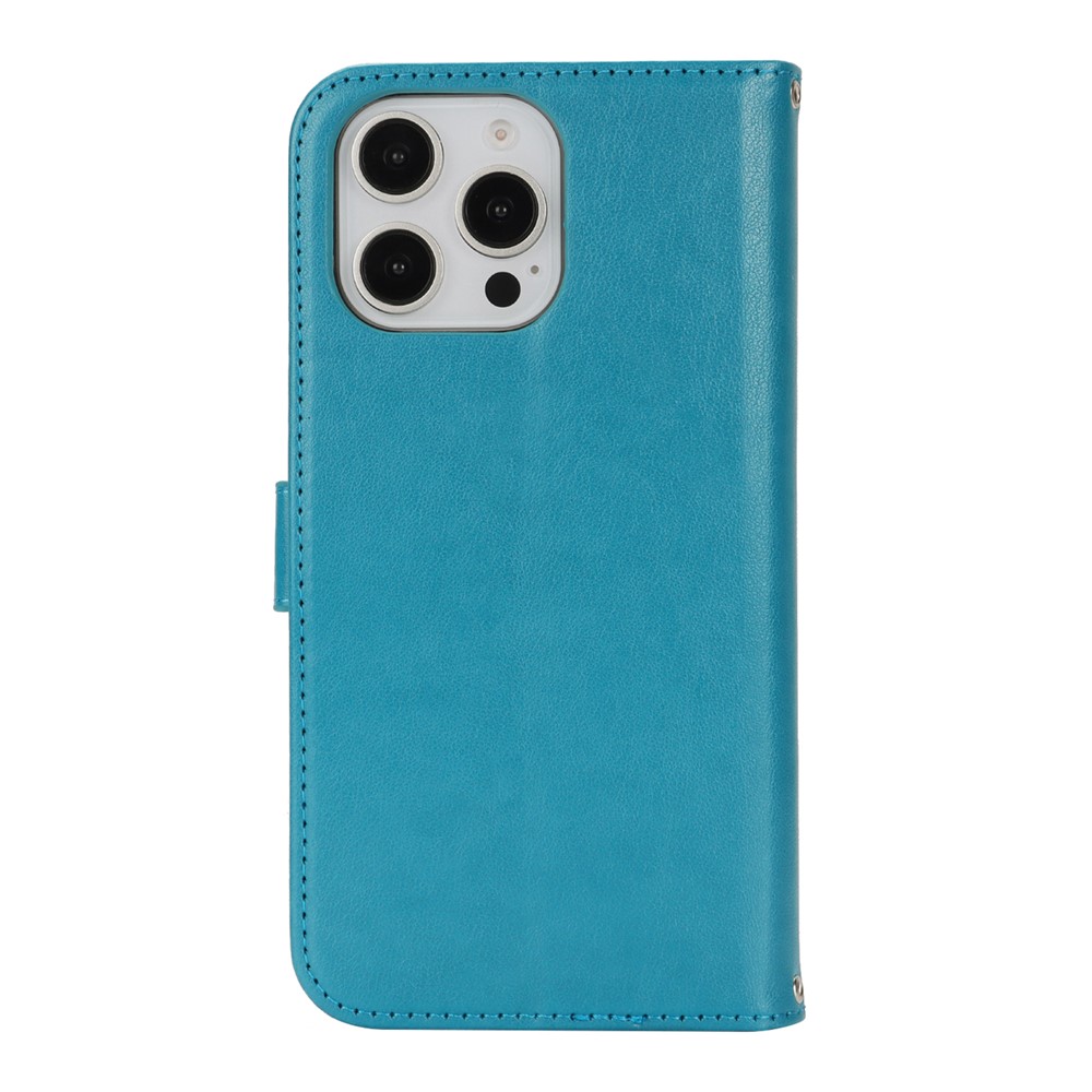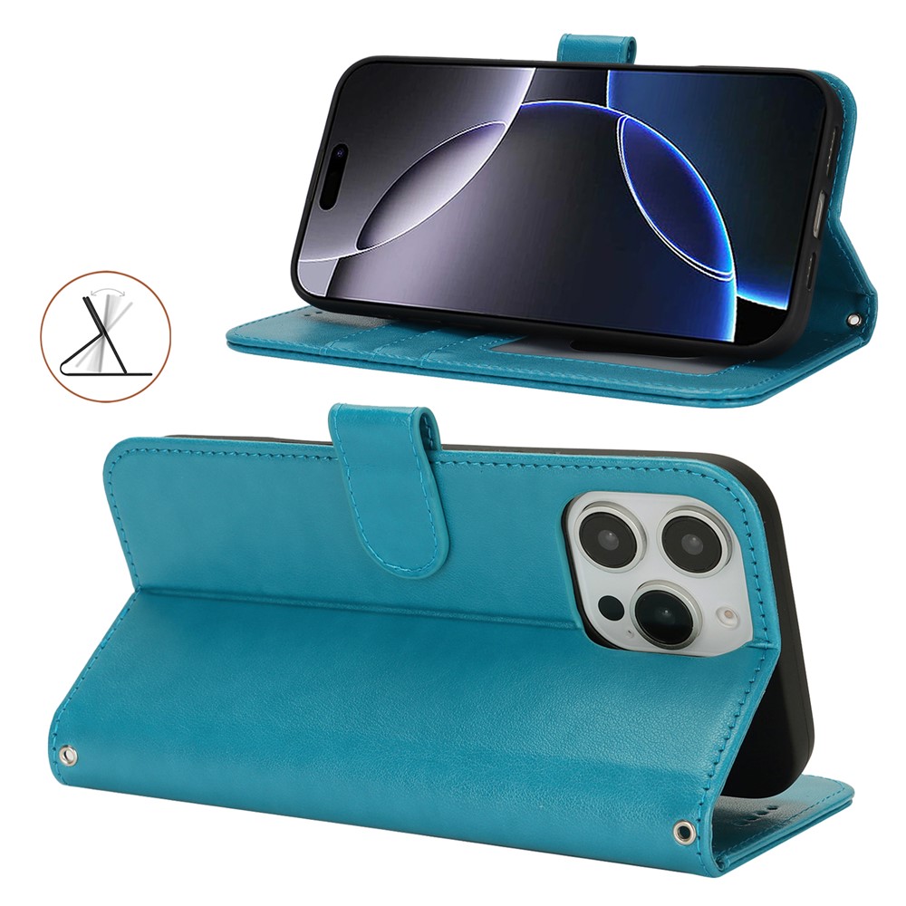 For iPhone 16 Pro Max Stand Case Textured Leather Wallet Phone Cover with Strap - Blue