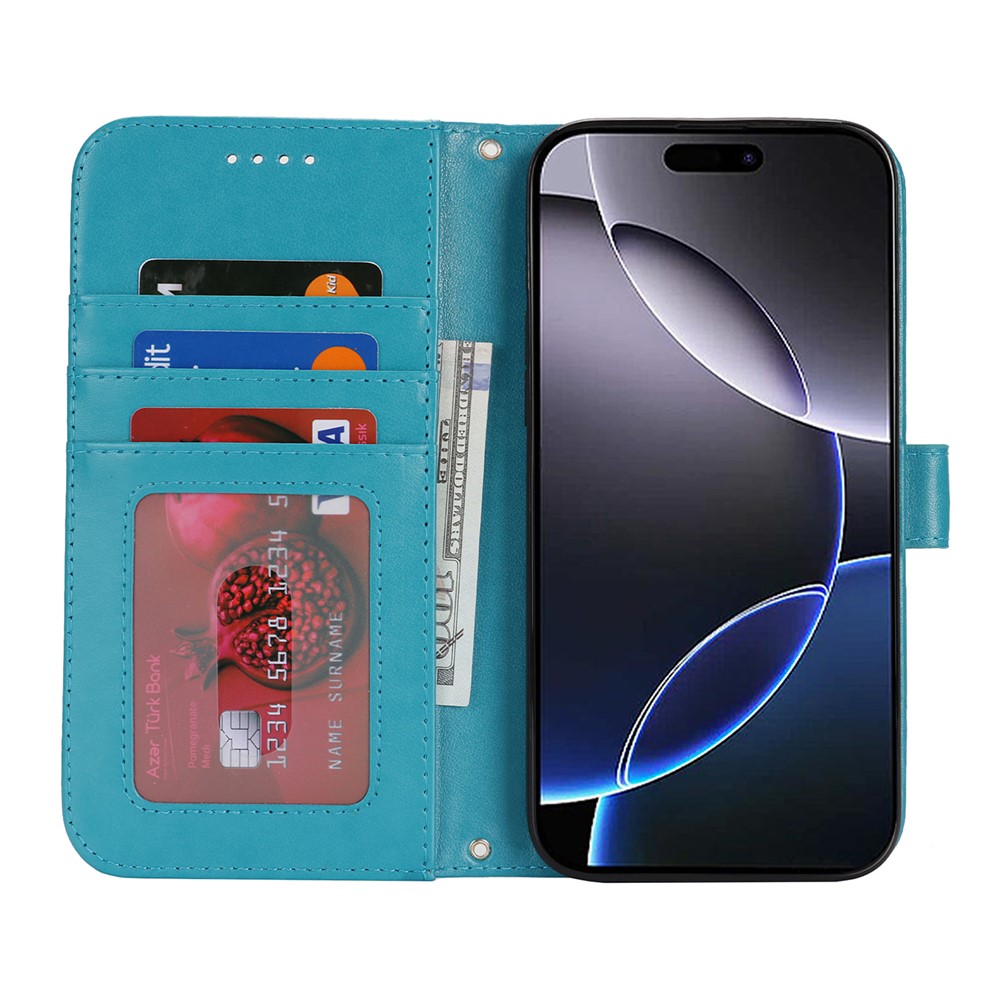 For iPhone 16 Pro Max Stand Case Textured Leather Wallet Phone Cover with Strap – Blue