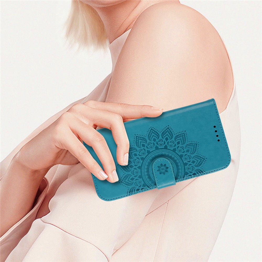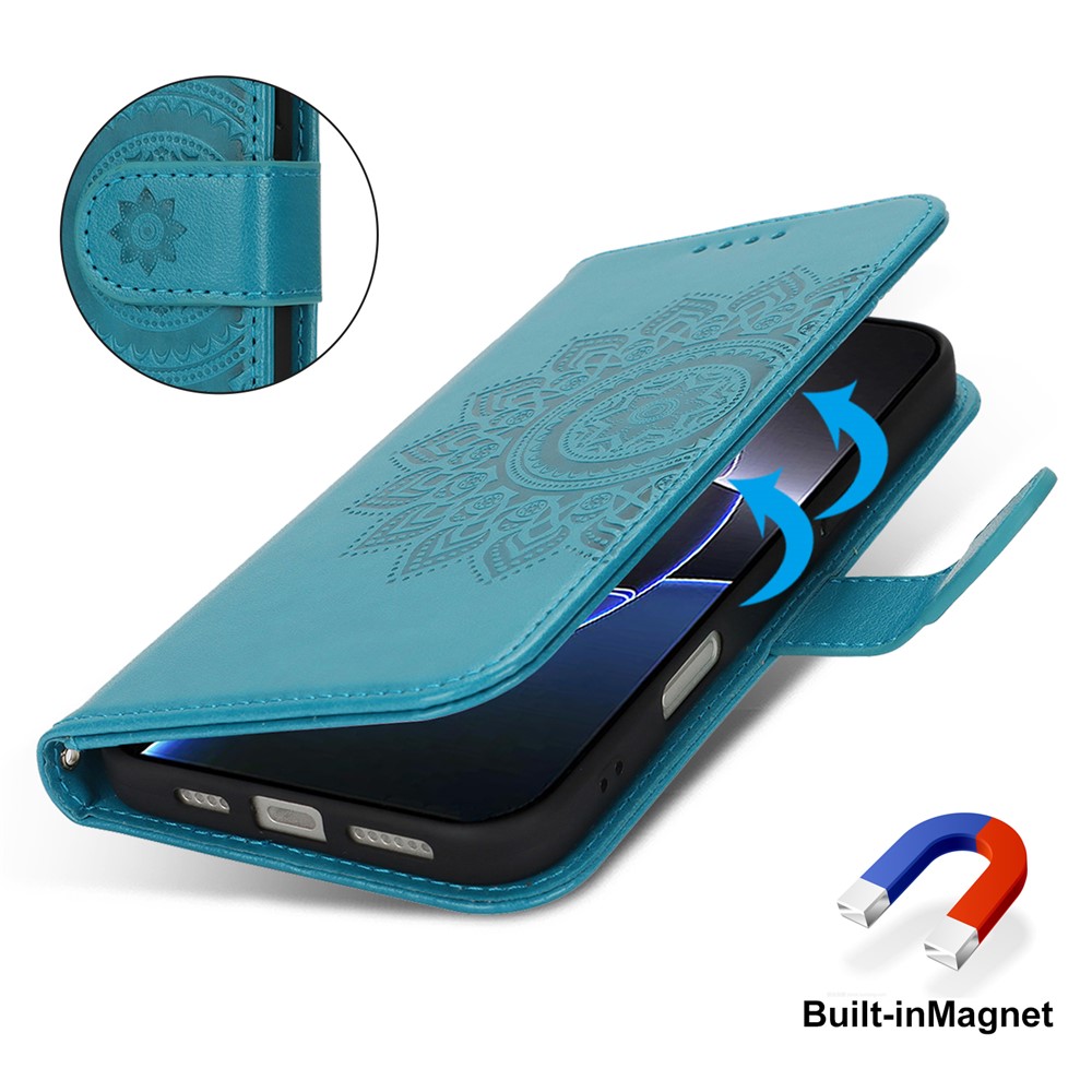 For iPhone 16 Pro Max Stand Case Textured Leather Wallet Phone Cover with Strap - Blue $16.95