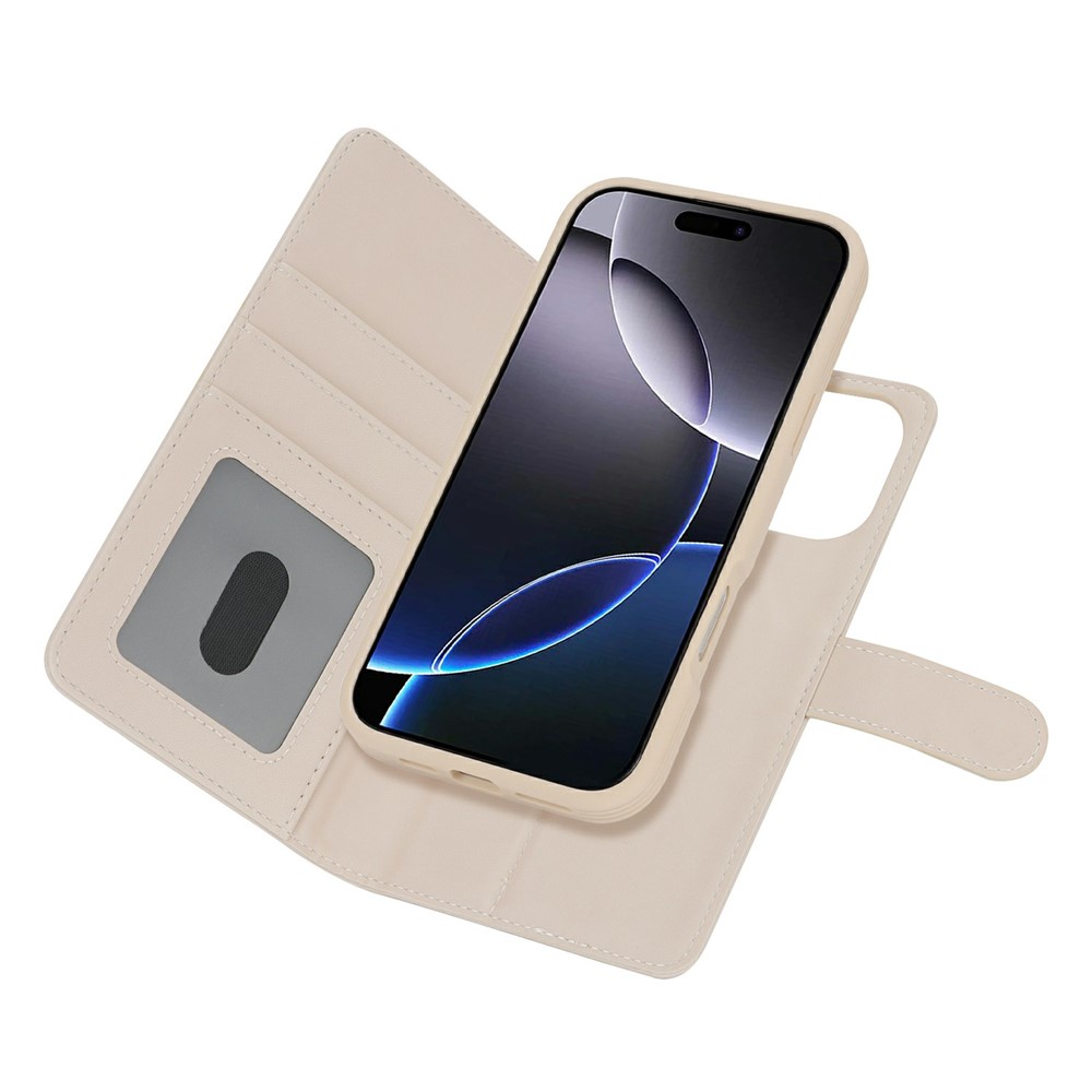 For iPhone 16 Pro Max Wallet Case Compatible with MagSafe Anti-Drop Detachable PU Leather Phone Cover – Beige