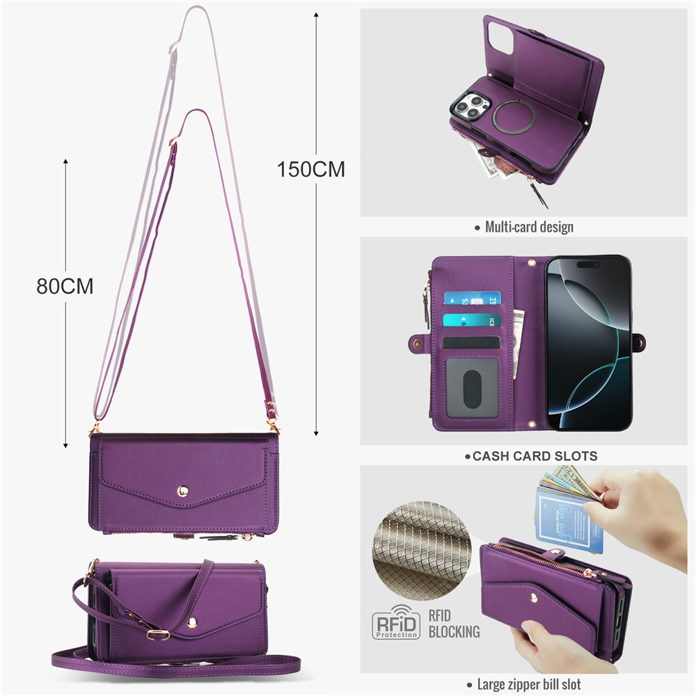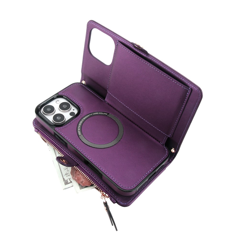 - Wallet Design Features a built-in wallet with 3 card slots, a cash slot, a zipper purse and a cash pocket, allowing you to carry your essentials with ease