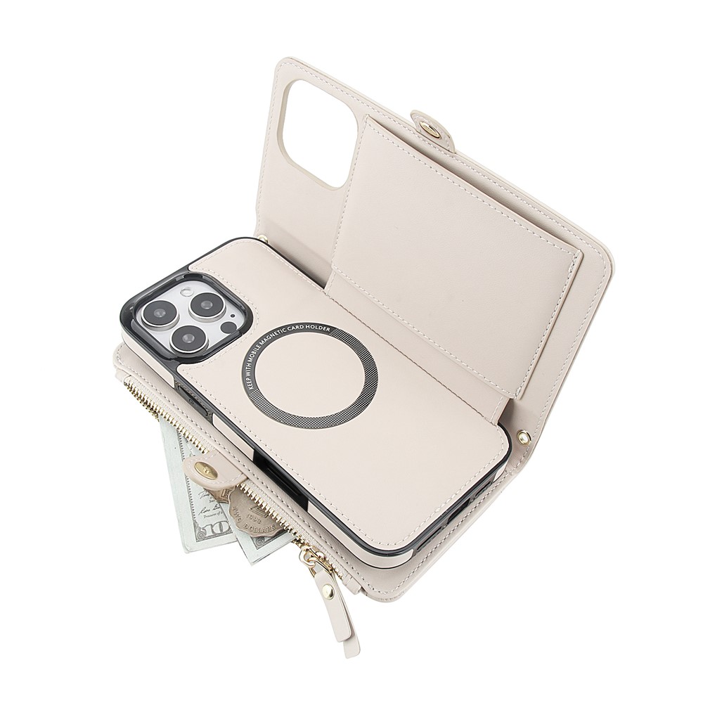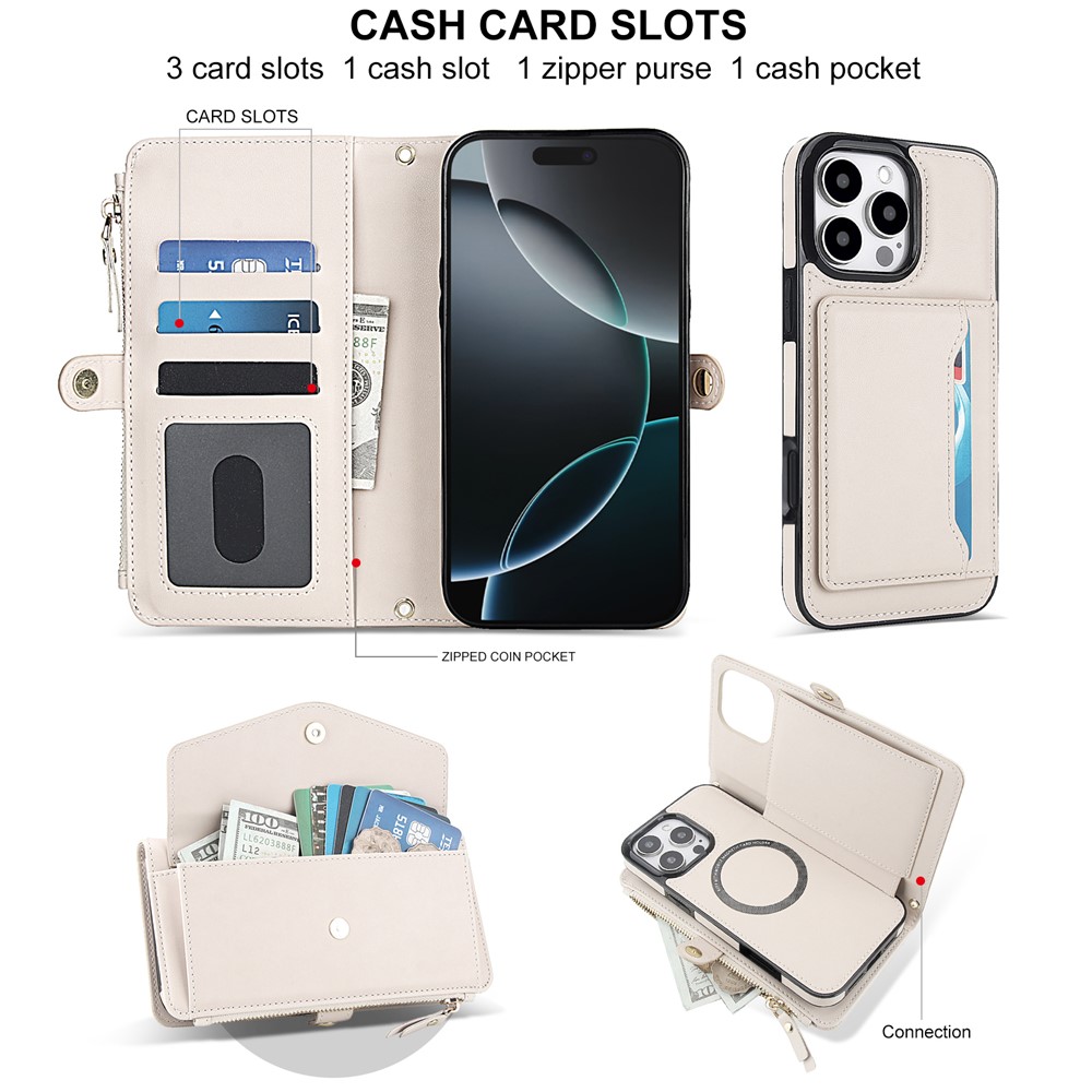 - Wallet Design Features a built-in wallet with 3 card slots, a cash slot, a zipper purse and a cash pocket, allowing you to carry your essentials with ease