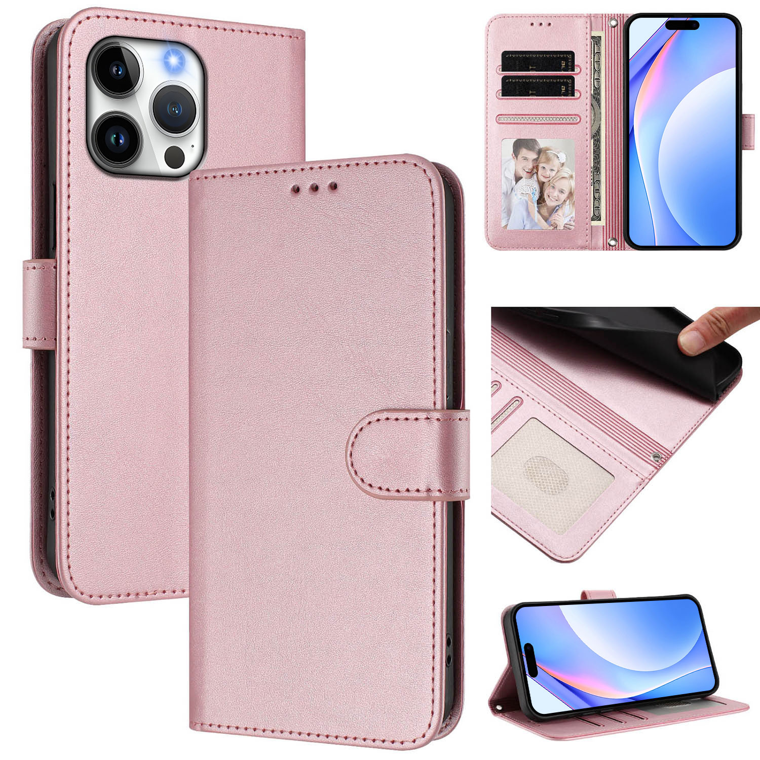 - Multifunctional Wallet Storage Includes 2 card slots, 1 photo slot, and a side wallet pocket for cash, combining convenience and organization in one compact case