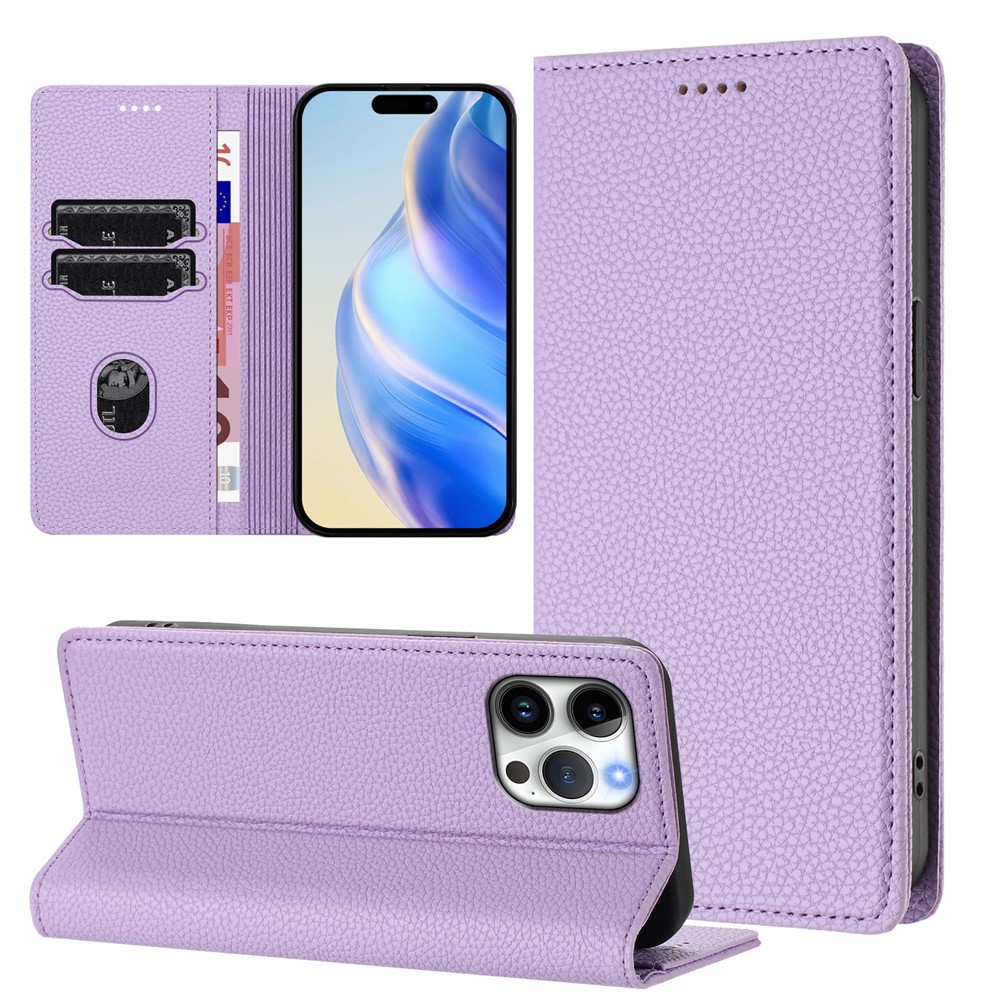 For iPhone 16 Pro Max Wallet Case RFID Blocking Litchi Texture Leather Mobile Cover - Light Purple $15.69