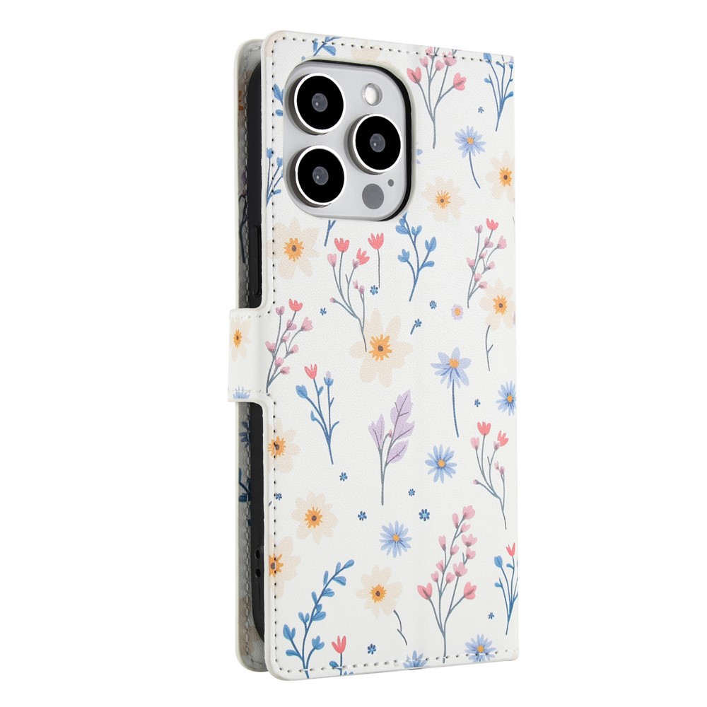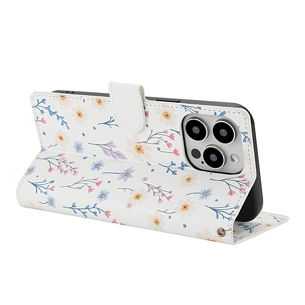 • For iPhone 16 Pro Max Wallet Case Rhombic Floral Design Leather Flip Phone Cover with Strap - A1