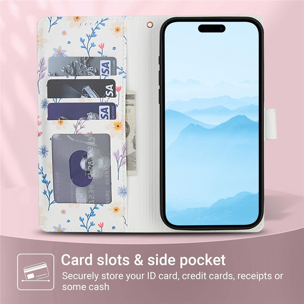 For iPhone 16 Pro Max Wallet Case Rhombic Floral Design Leather Flip Phone Cover with Strap - A2 $17.21