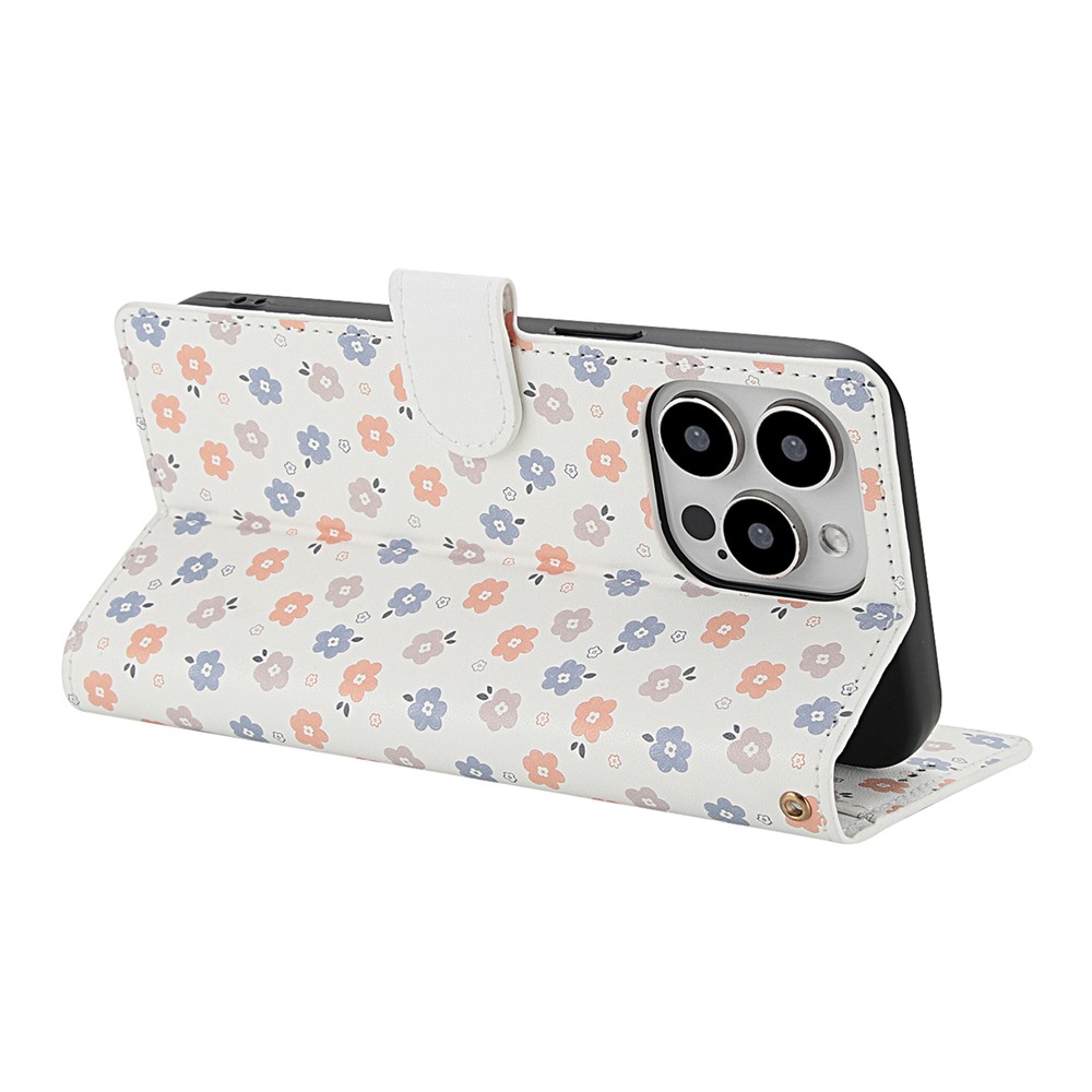 • For iPhone 16 Pro Max Wallet Case Rhombic Floral Design Leather Flip Phone Cover with Strap - A2