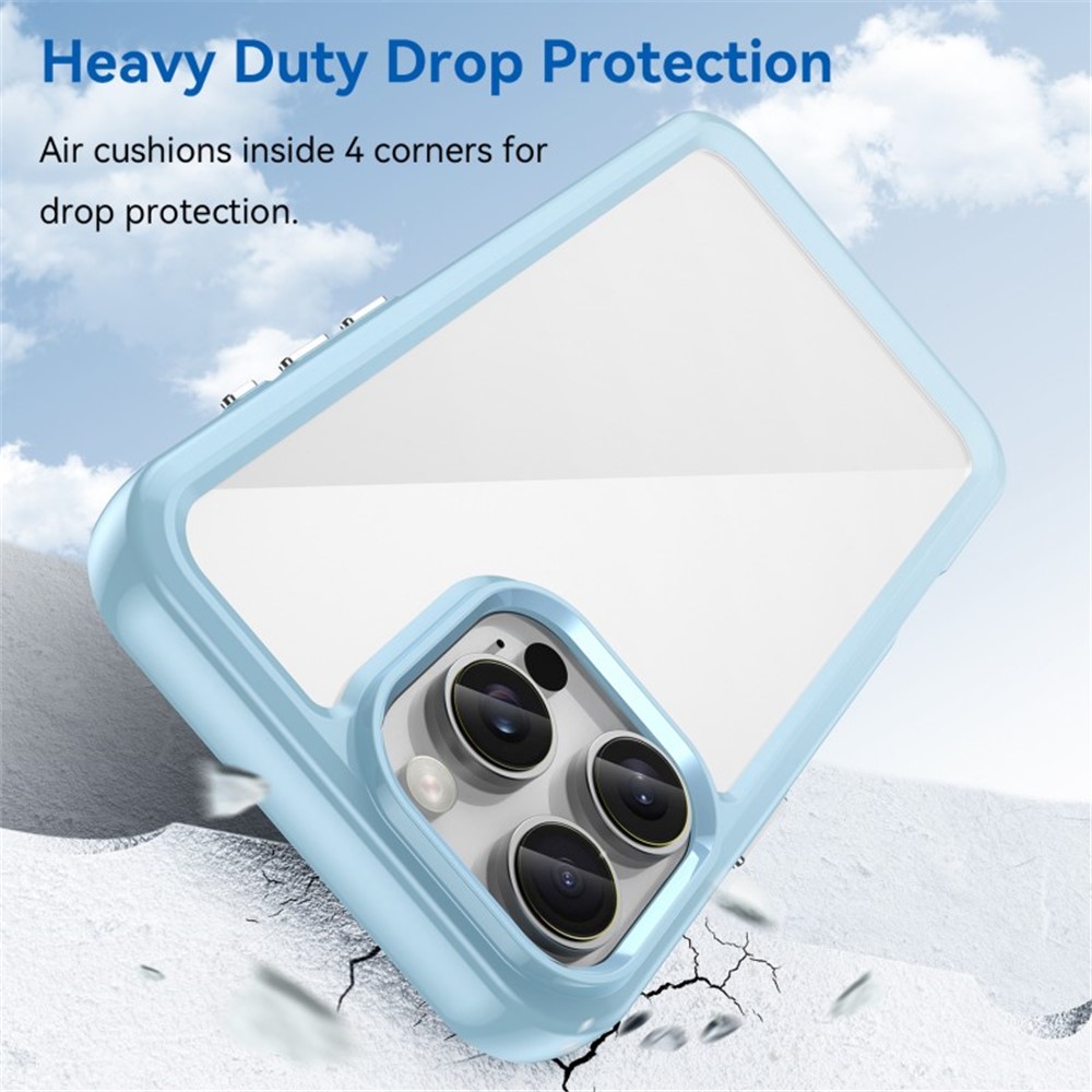 • For iPhone 16 Pro Phone Case WANLONFENG XC Series TPU Acrylic Cover with Tempered Glass (Big Lens Hole) - Transparent Blue