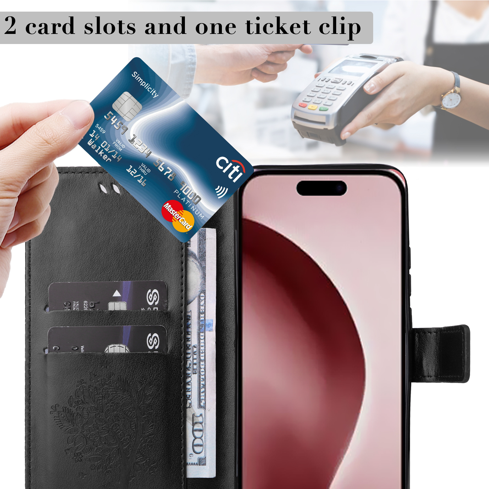 - Elegant Pattern Imprinted Features a stunning cat and tree pattern imprinted design on the front cover and the inner card slots area, adding a touch of luxury and uniqueness