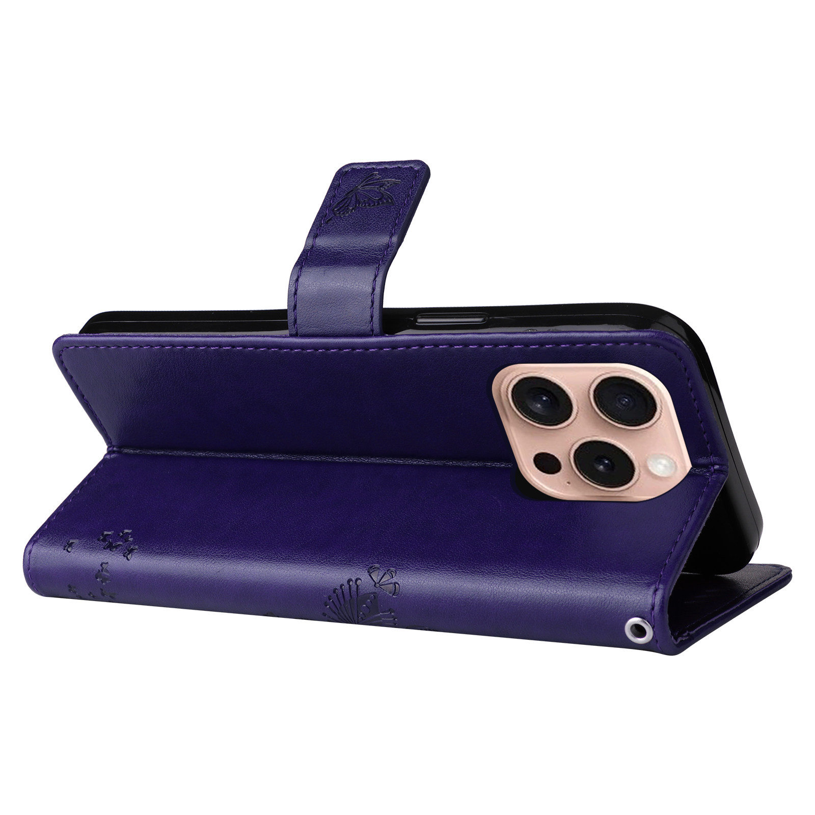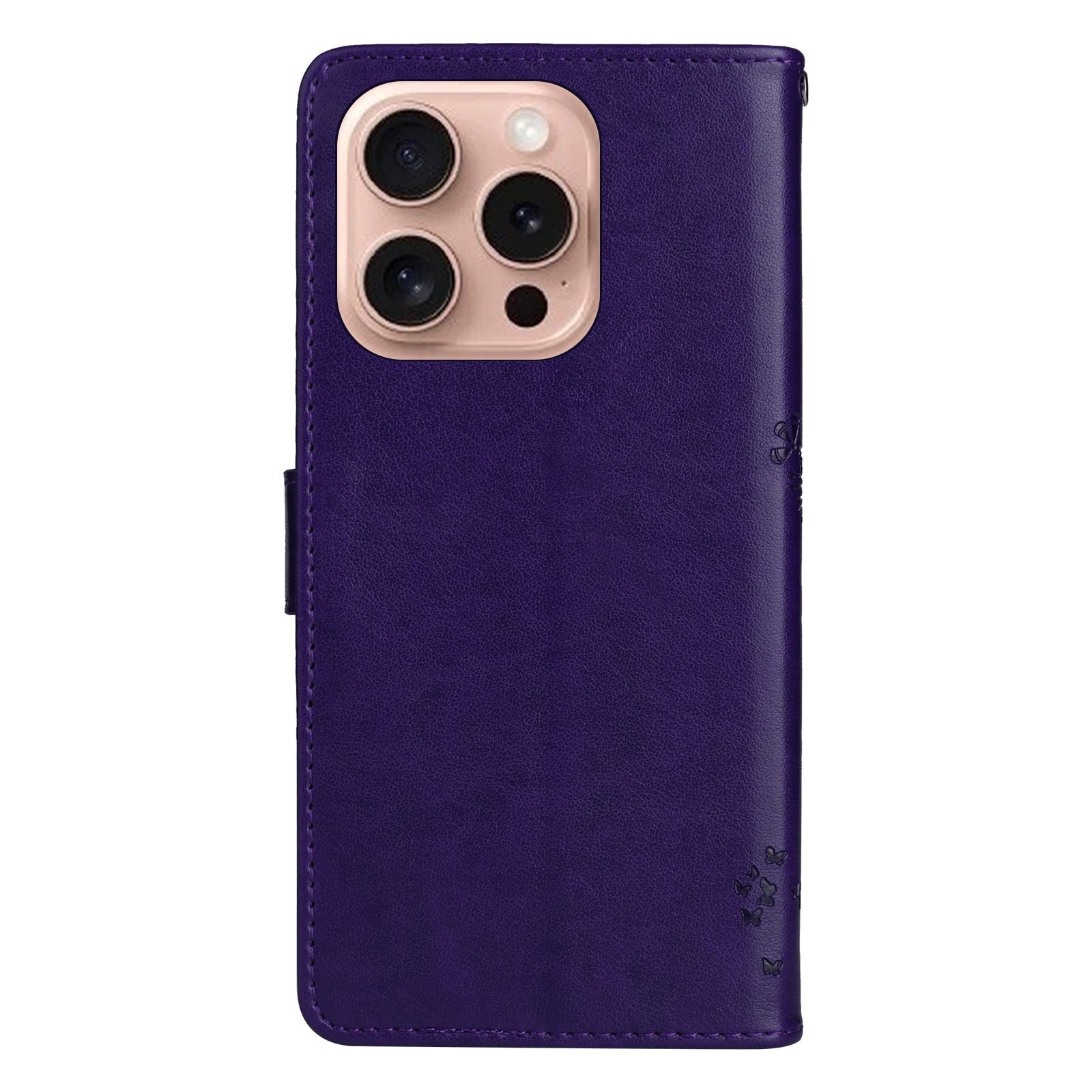 For iPhone 16 Pro Phone Case with Stand Cat Tree Pattern Leather Wallet Mobile Cover – Purple