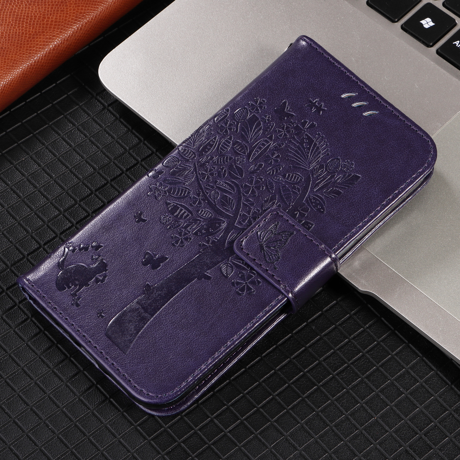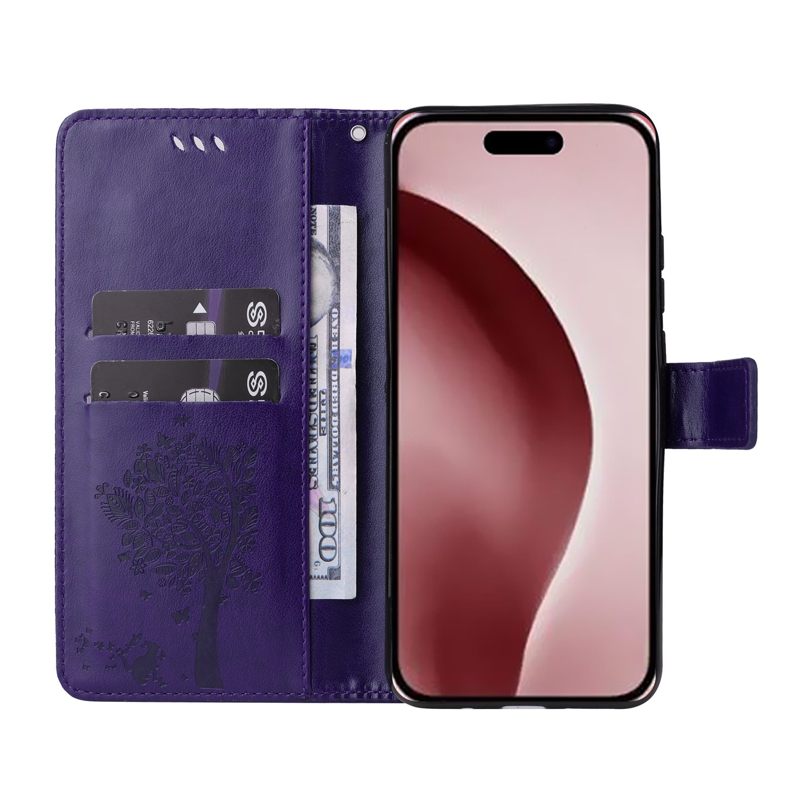 • Elegant Pattern Imprinted Features a stunning cat and tree pattern imprinted design on the front cover and the inner card slots area, adding a touch of luxury and uniqueness
