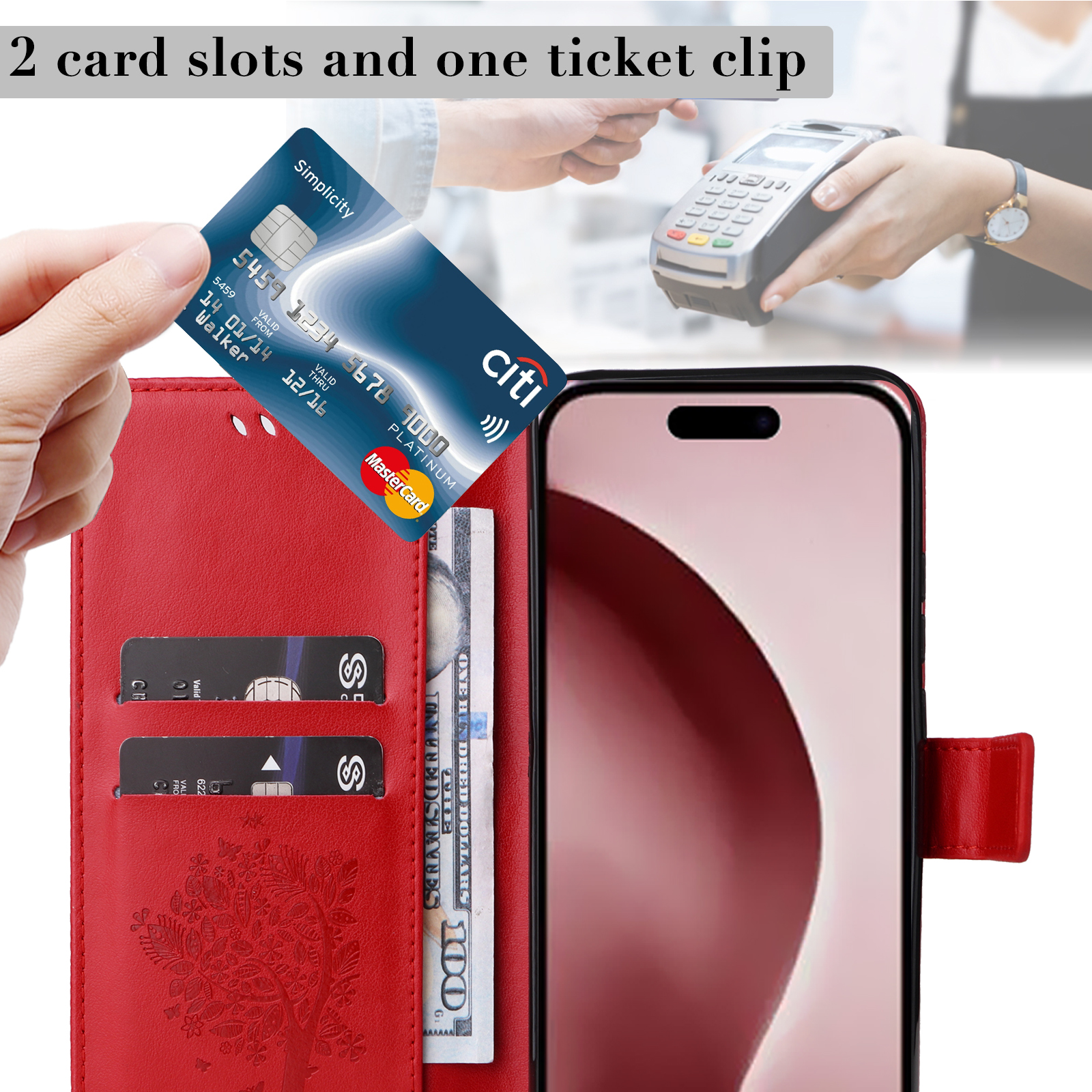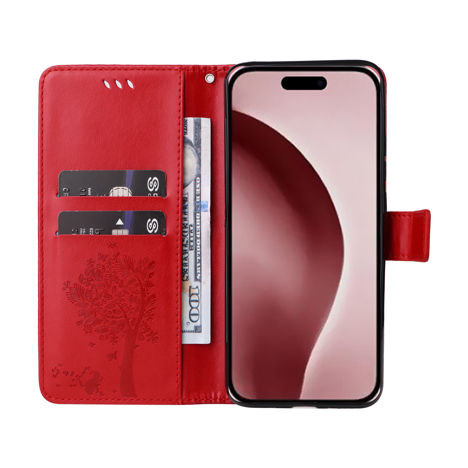 - Elegant Pattern Imprinted Features a stunning cat and tree pattern imprinted design on the front cover and the inner card slots area, adding a touch of luxury and uniqueness