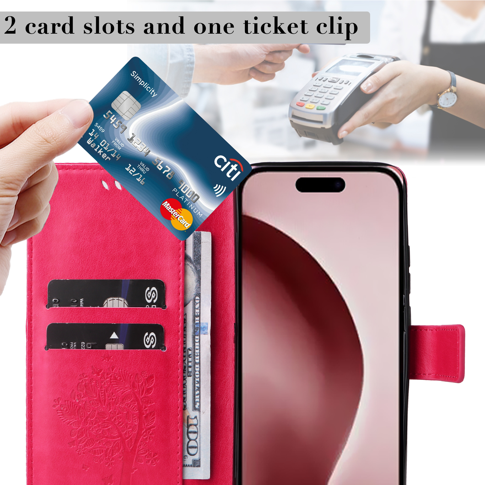 - Elegant Pattern Imprinted Features a stunning cat and tree pattern imprinted design on the front cover and the inner card slots area, adding a touch of luxury and uniqueness