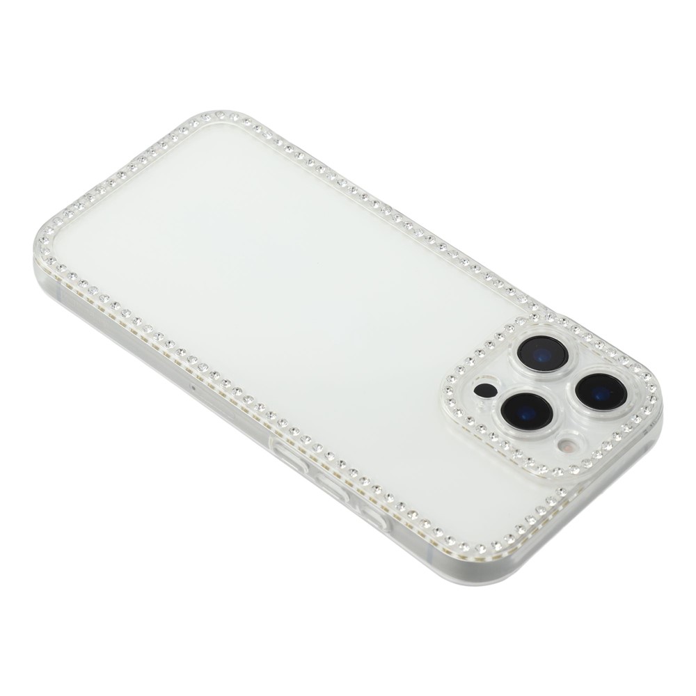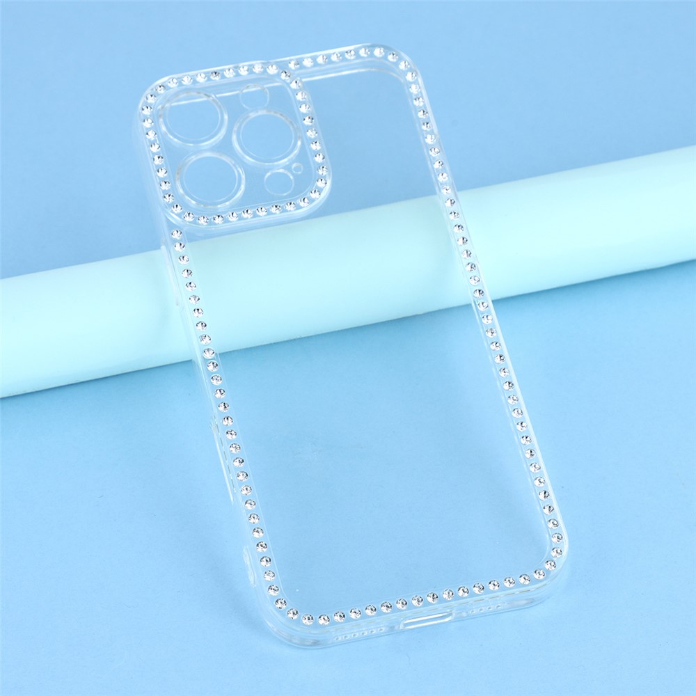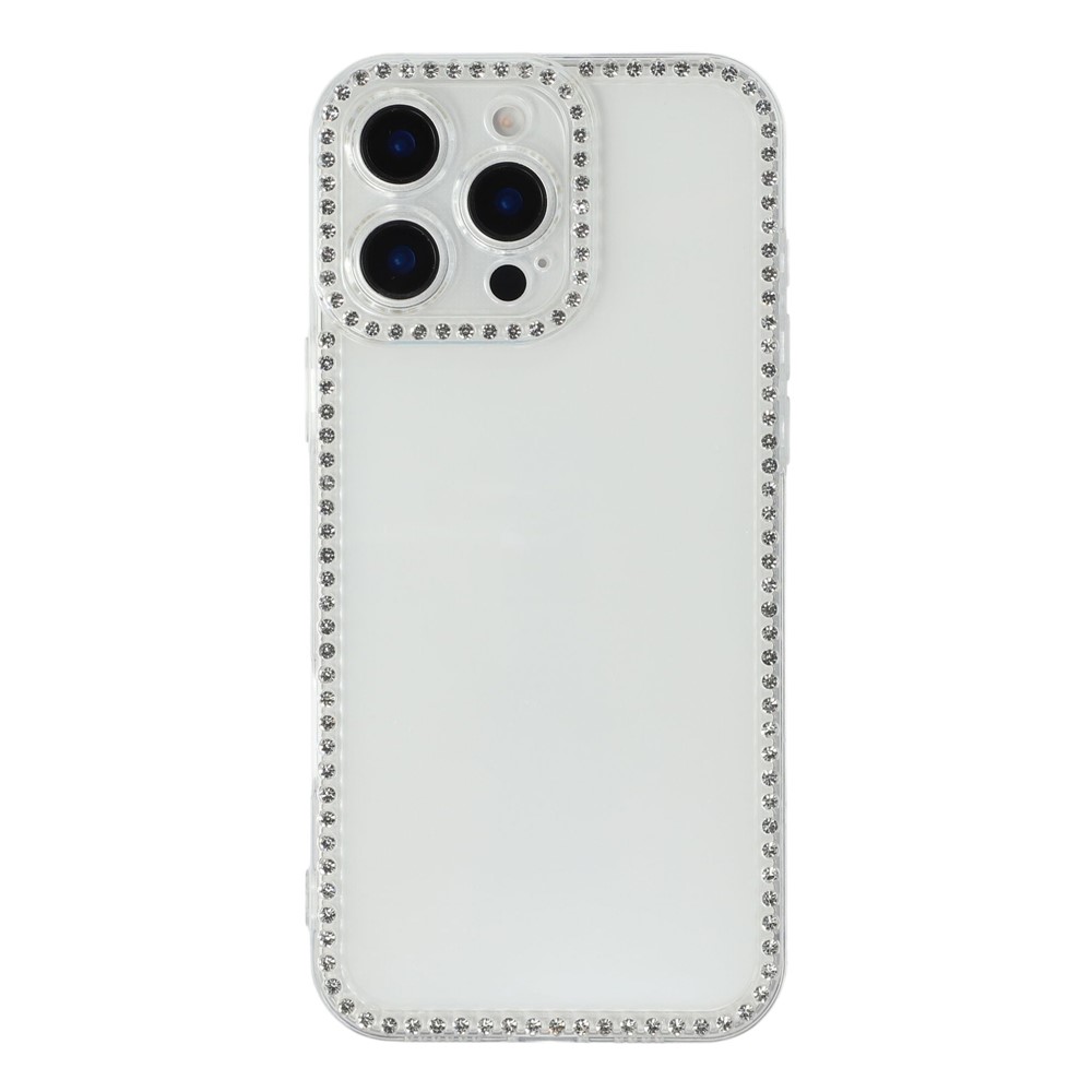 For iPhone 16 Pro TPU Case Rhinestone Decor Clear Phone Back Cover, Precise Cutout