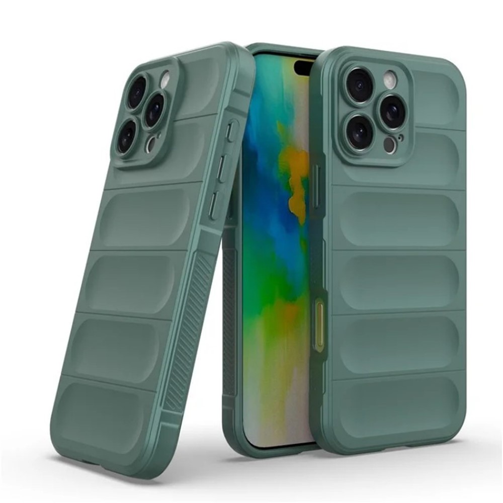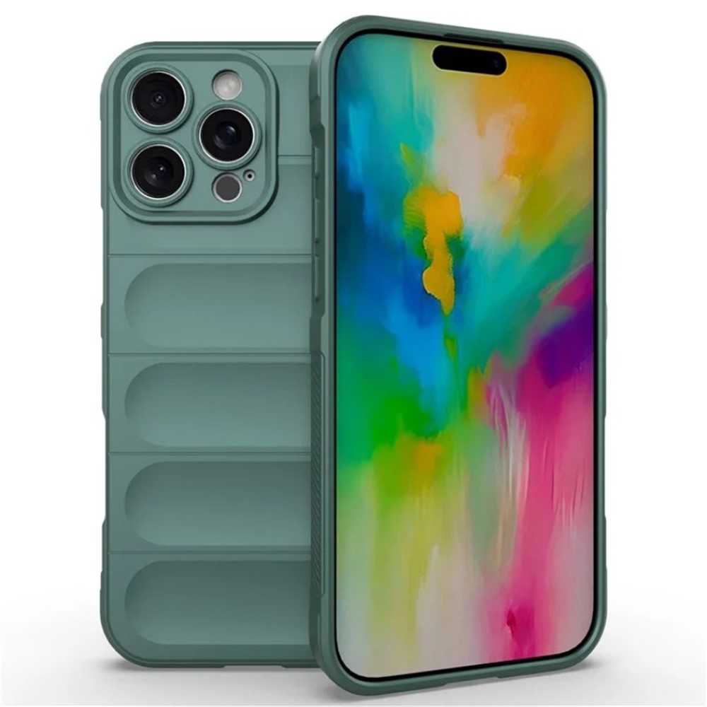 For iPhone 16 Pro TPU Case WANLONFENG HD Series Anti Slip Phone Cover with Tempered Glass – Army Green