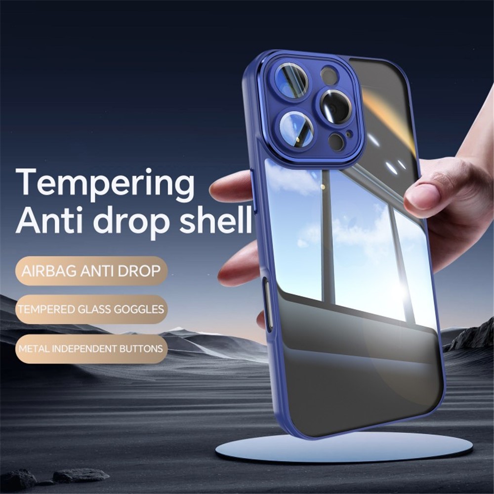 For iPhone 16 Pro TPU Case WANLONFENG Shockproof Clear Phone Cover with Tempered Glass Film – Blue