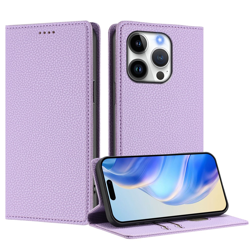 For iPhone 16 Pro Wallet Case RFID Blocking Litchi Texture Leather Mobile Cover – Light Purple