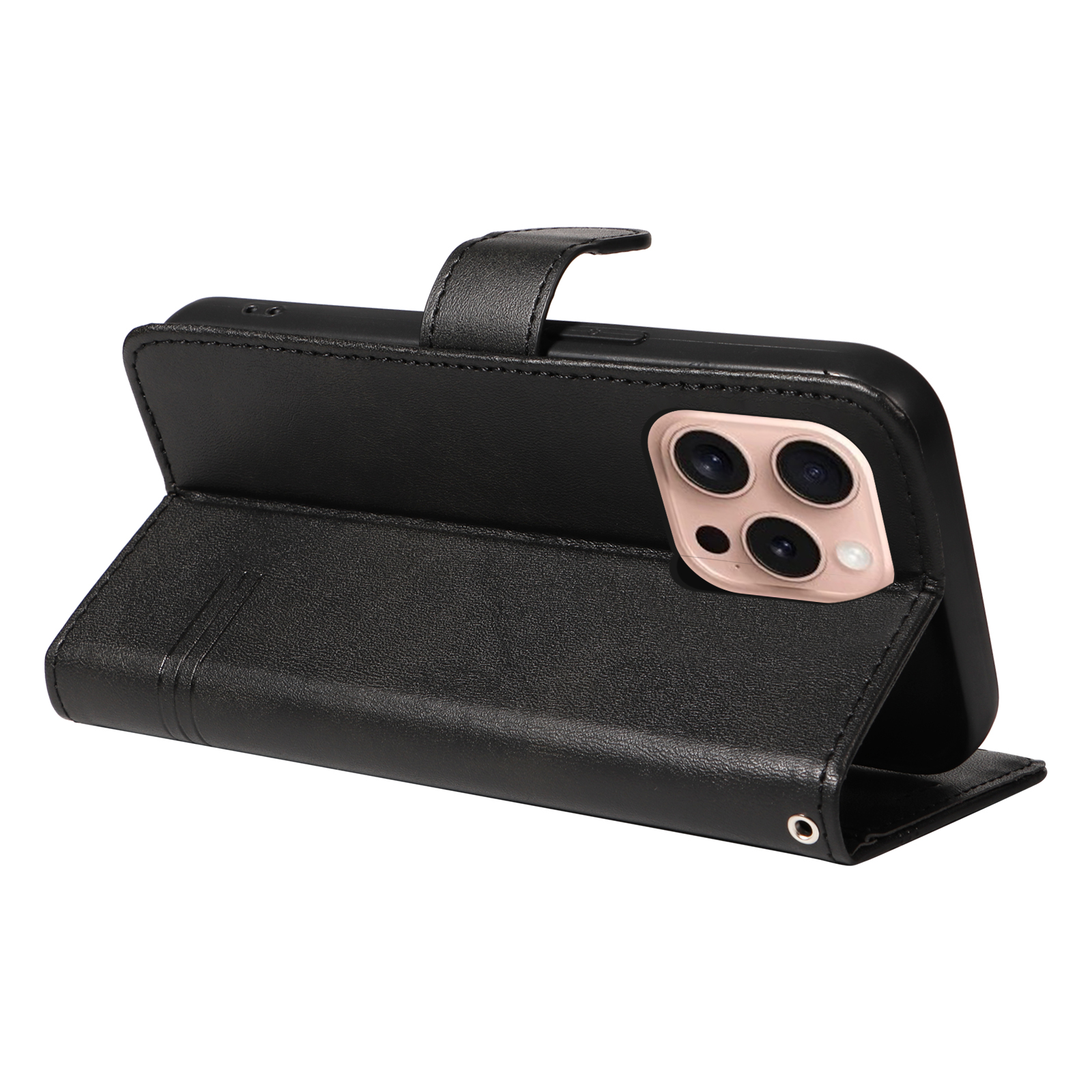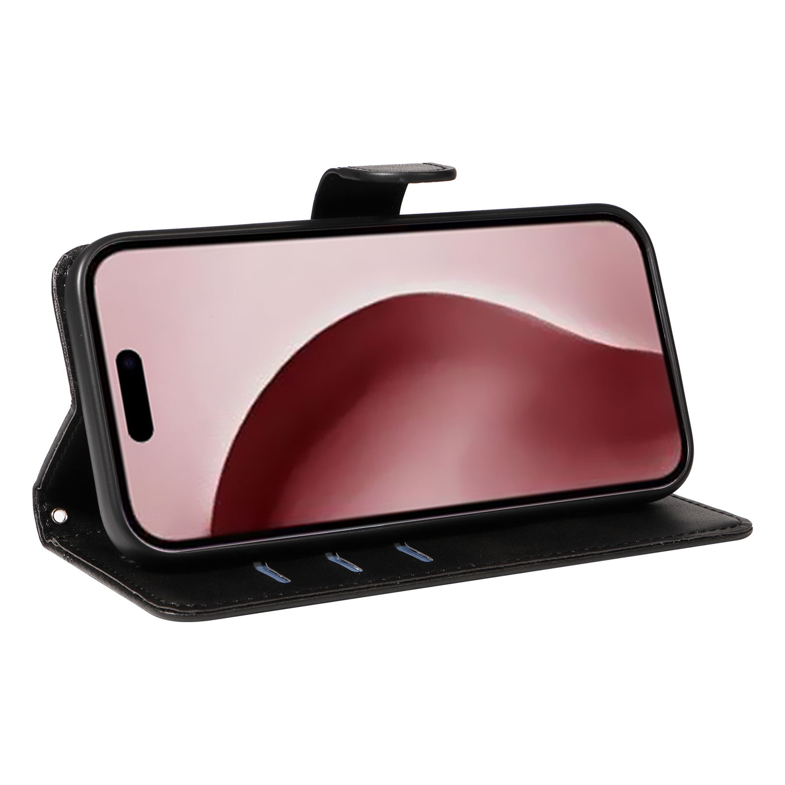 For iPhone 16 Pro Wallet Case T-Shape Lines Leather Phone Cover Stand -  Black