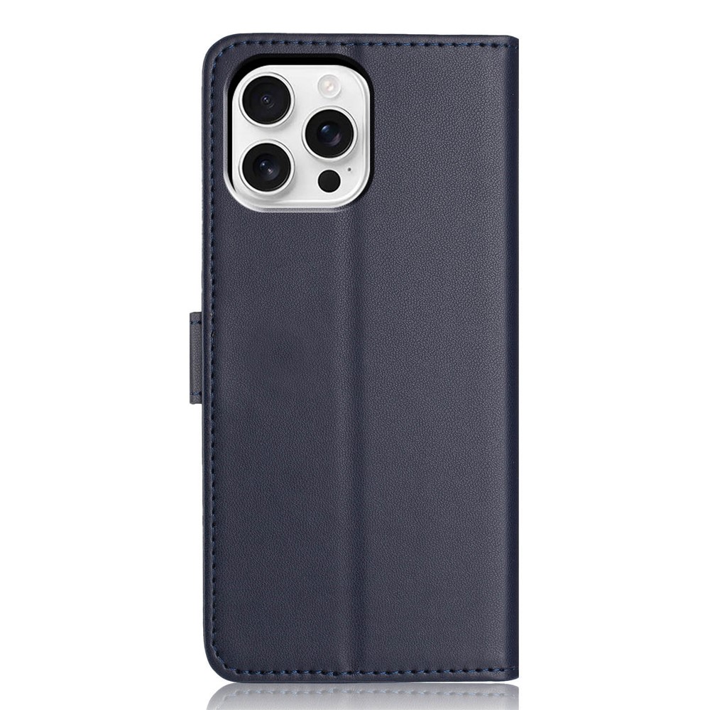 For iPhone 16 Pro Wallet Case with Strap / Multiple Card Slots Solid Color Leather Stand Phone Cover - Blue