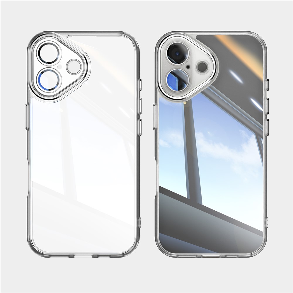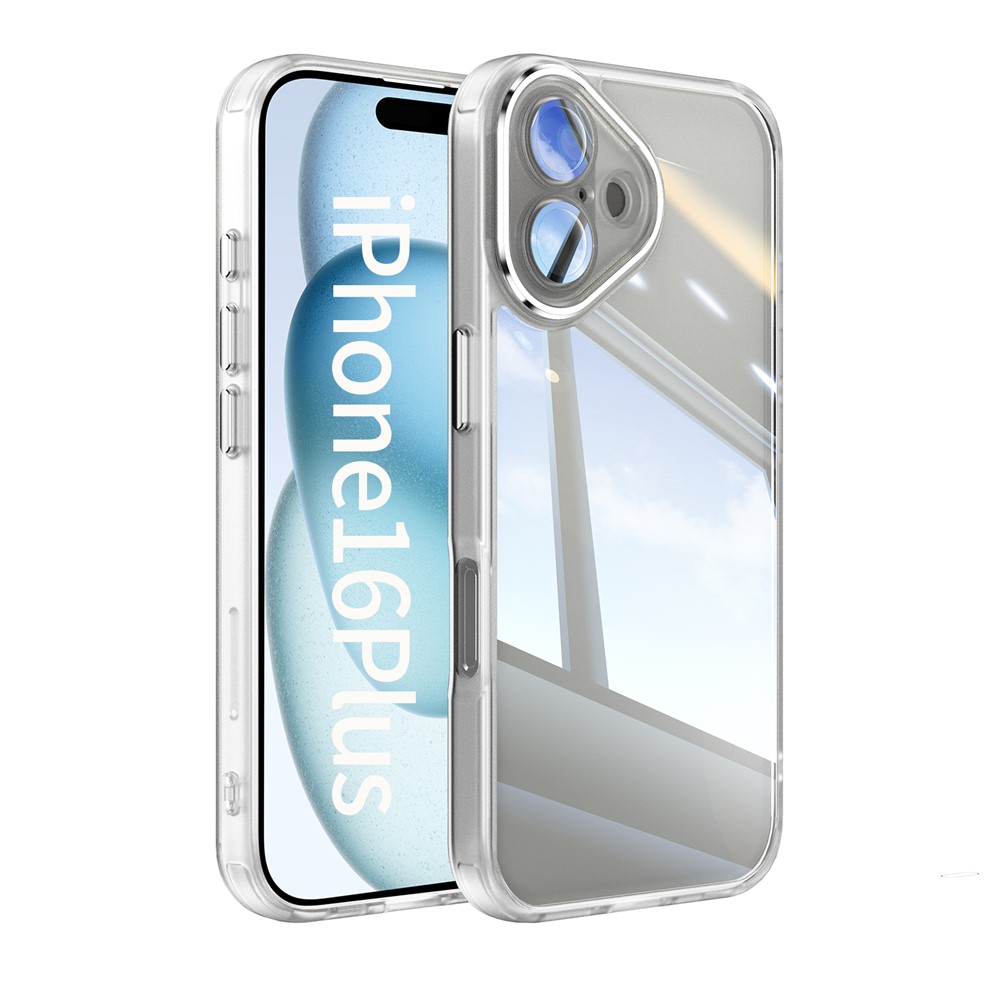For iPhone 16 TPU Case WANLONFENG Shockproof Clear Phone Cover with Tempered Glass Film – Transparent