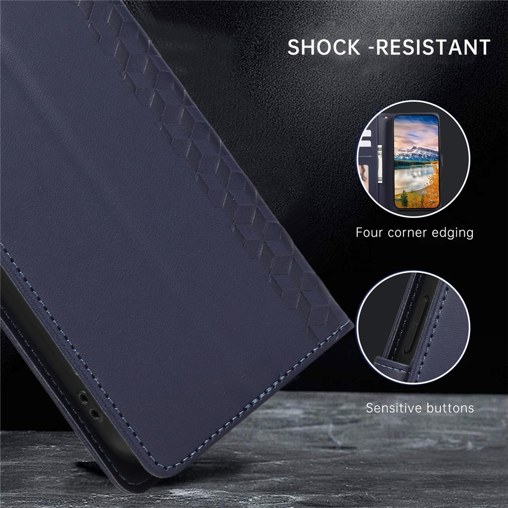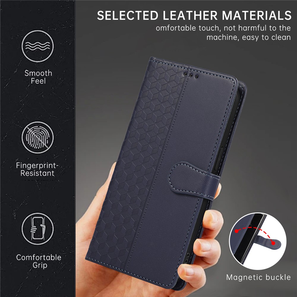 - Stylish 3D Rhombus Grid Design & Premium Material Features a 3D rhombus grid imprinted pattern, crafted from high-quality PU leather and durable TPU, combining luxurious feel with long-lasting durability