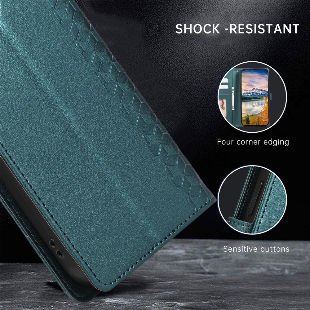 - Stylish 3D Rhombus Grid Design & Premium Material Features a 3D rhombus grid imprinted pattern, crafted from high-quality PU leather and durable TPU, combining luxurious feel with long-lasting durability