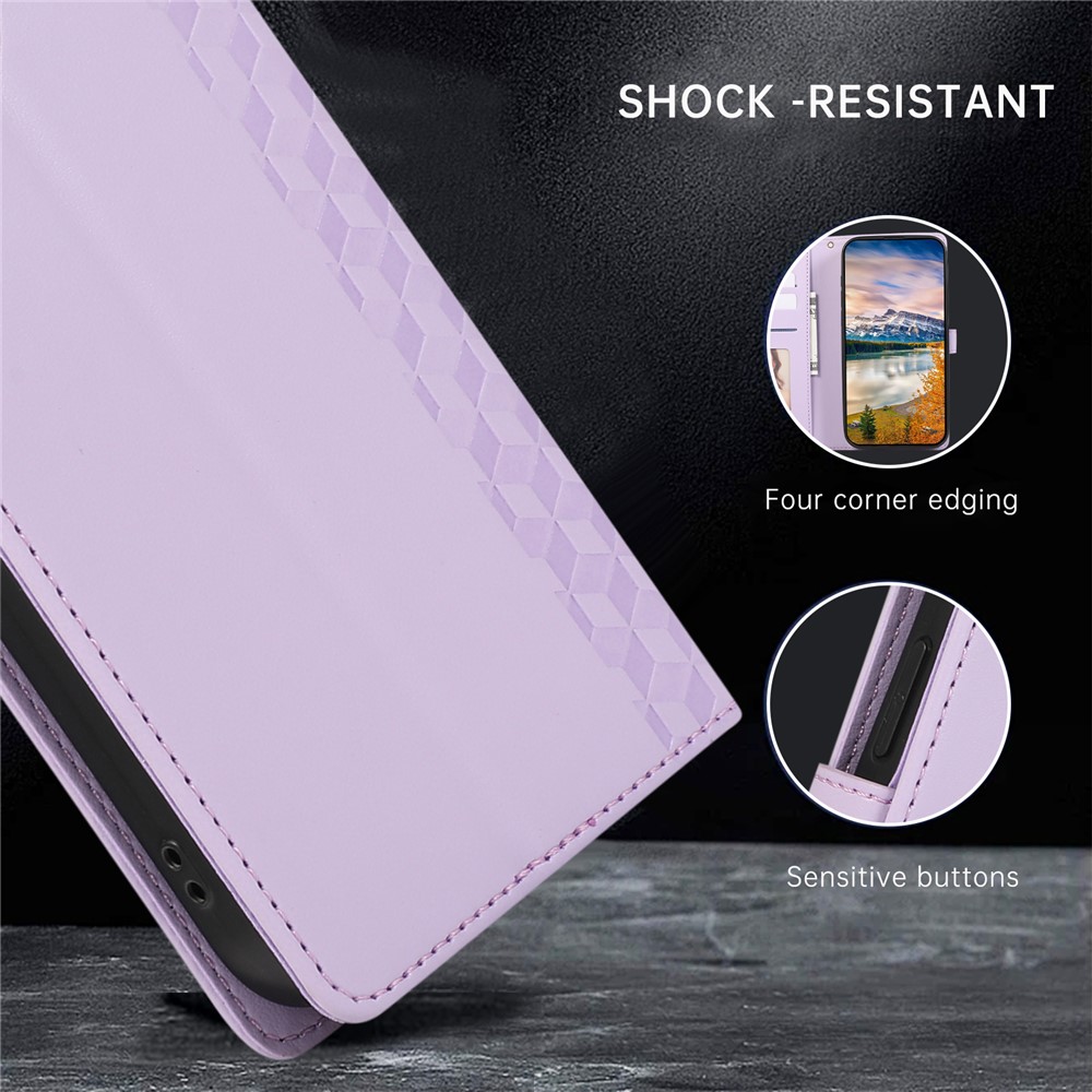 - Stylish 3D Rhombus Grid Design & Premium Material Features a 3D rhombus grid imprinted pattern, crafted from high-quality PU leather and durable TPU, combining luxurious feel with long-lasting durability