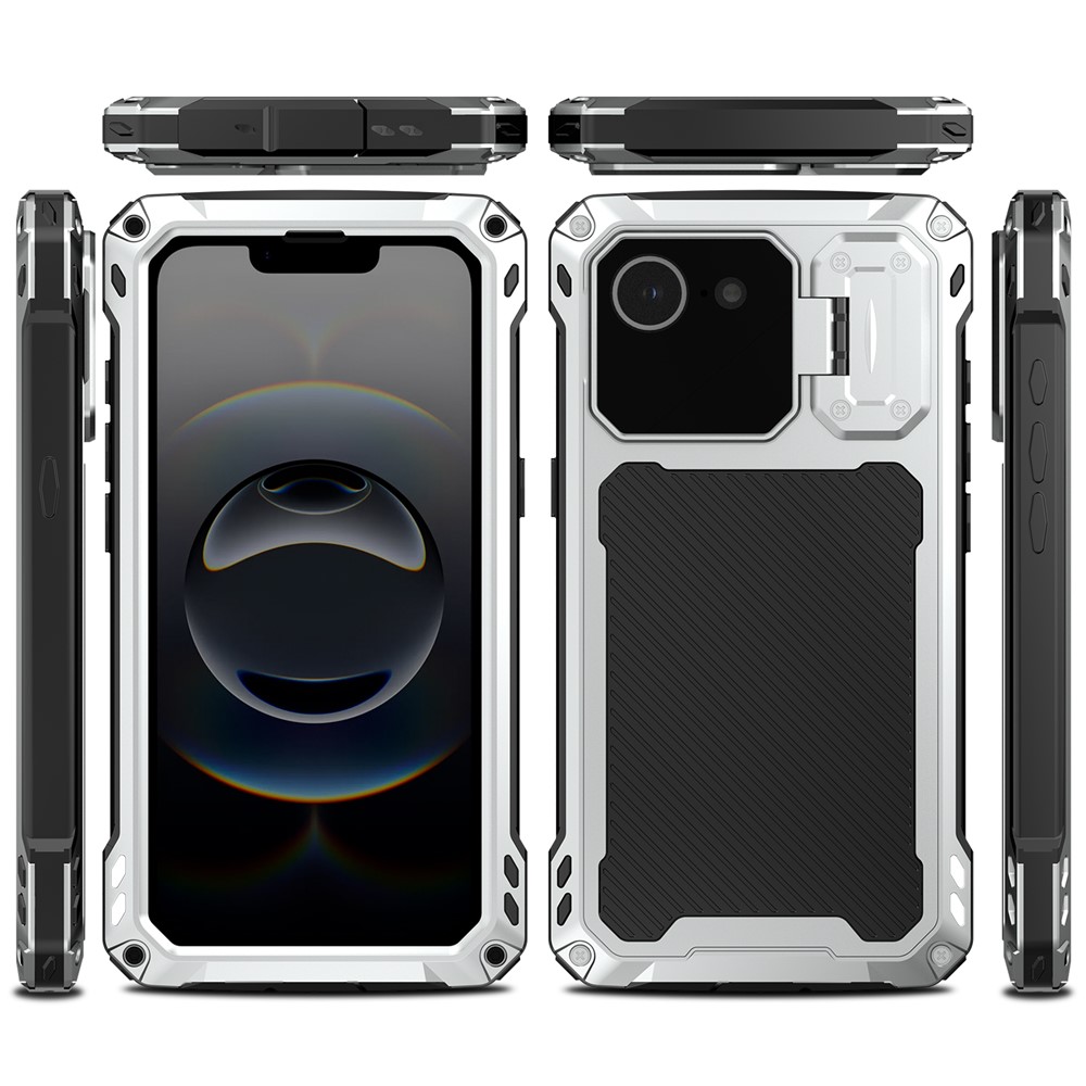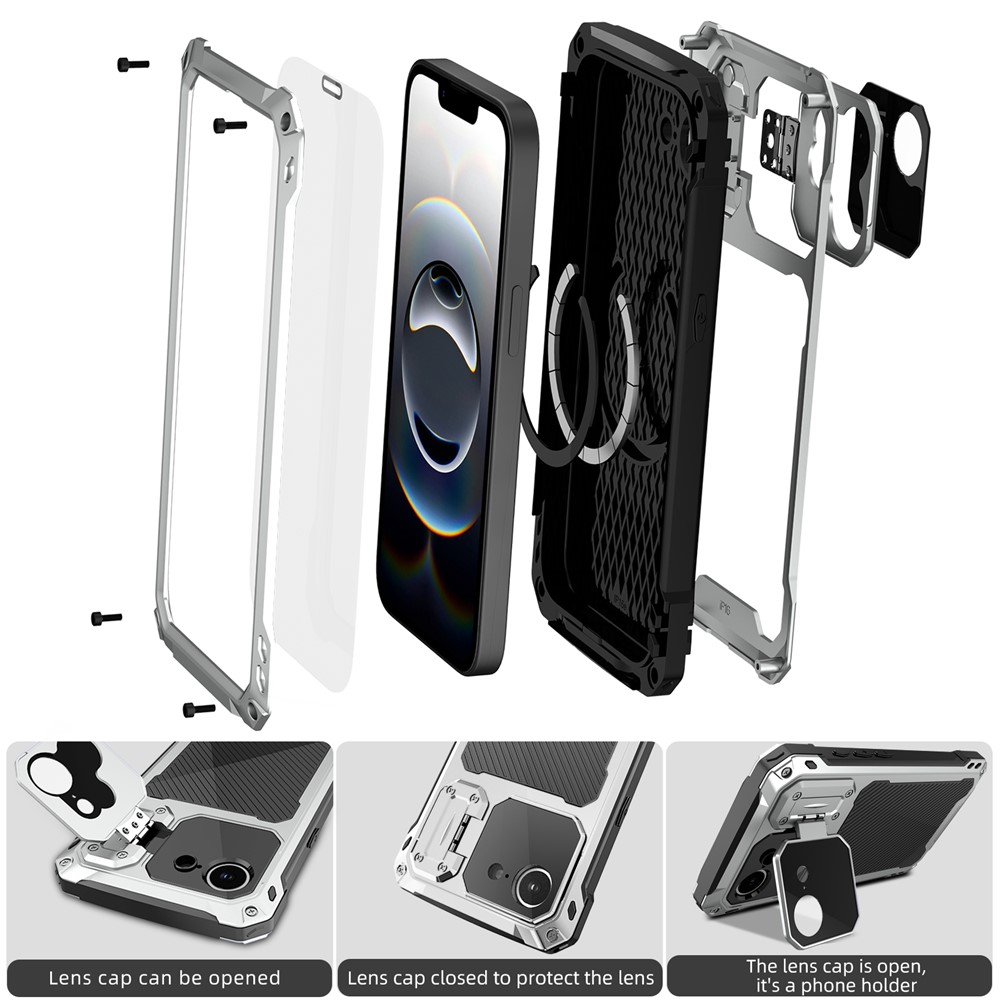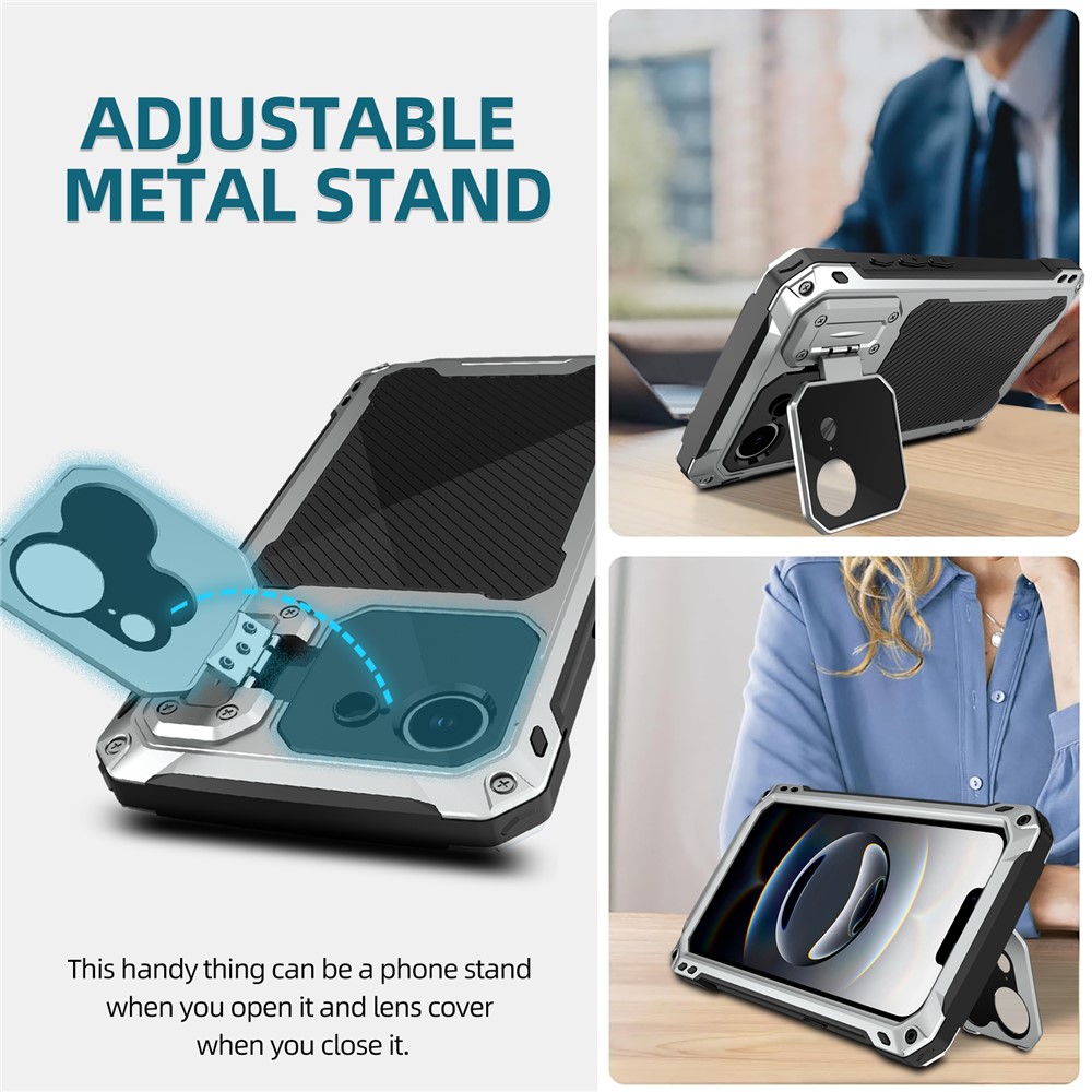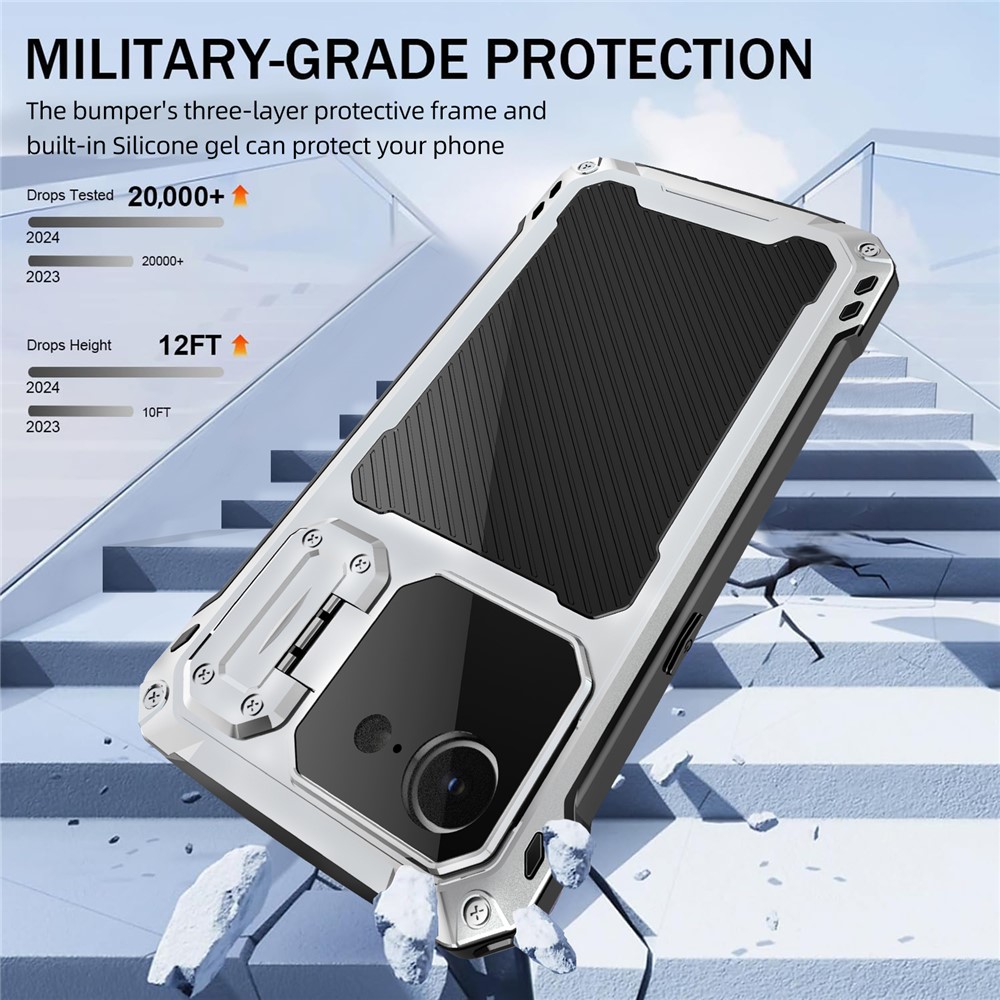 - Built-in Lens Kickstand The case features a metal lens kickstand that not only provides sturdy support for hands-free viewing but also acts as an additional layer of protection for your camera lens