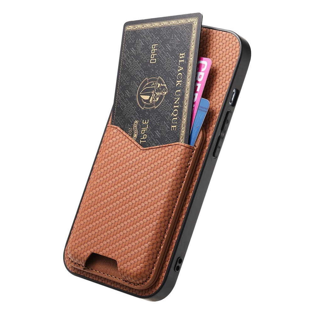 For iPhone 16e Case Card Holder Kickstand Carbon Fiber Texture Back Cover - Brown $15.90