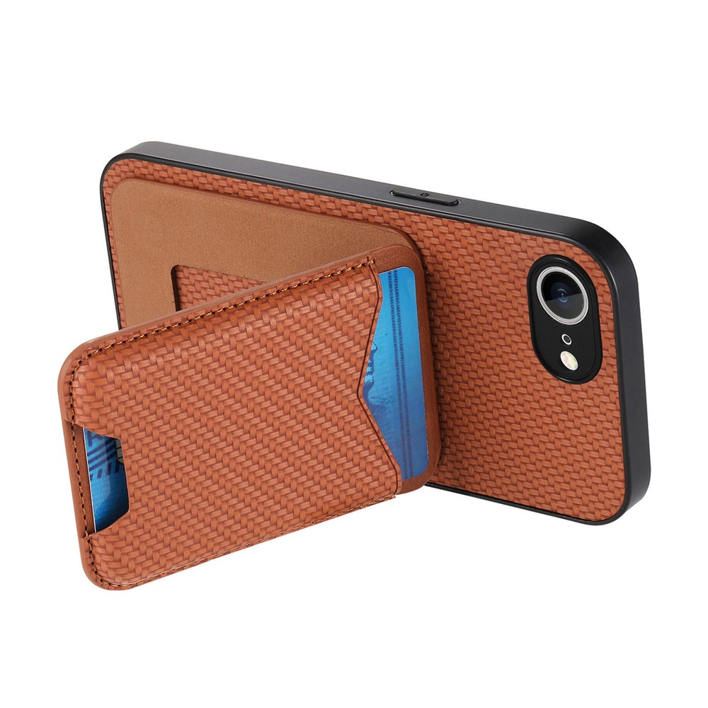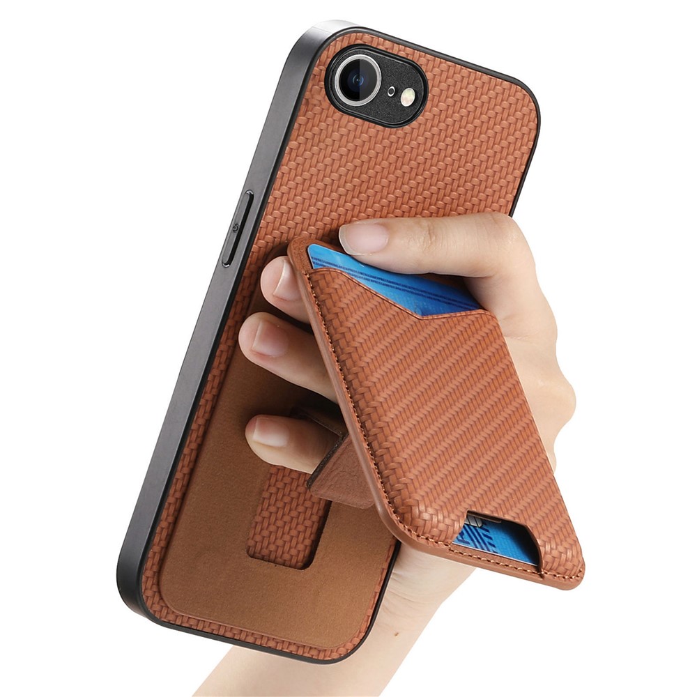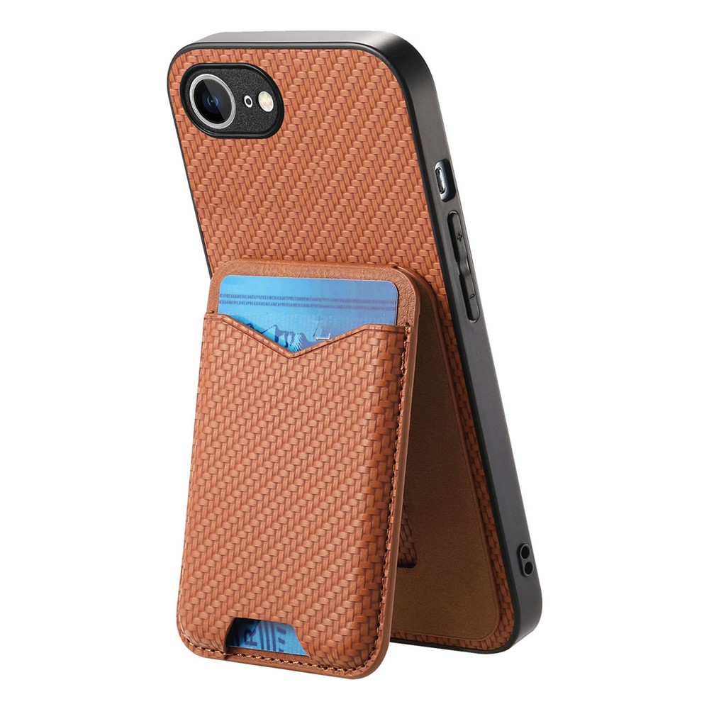For iPhone 16e Case Card Holder Kickstand Carbon Fiber Texture Back Cover – Brown