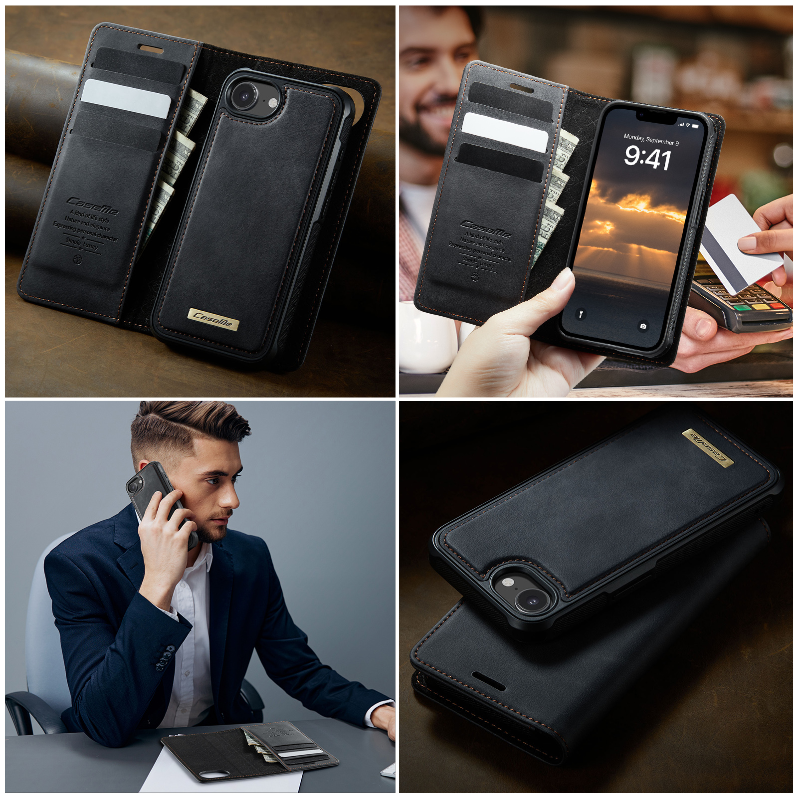 - Magnetic Detachable Wallet Design Built-in 3 card slots, and a cash pocket for credit cards, IDs, and cash. Magnetic detachable 2-in-1 design, can be used as a single shell or as a leather case