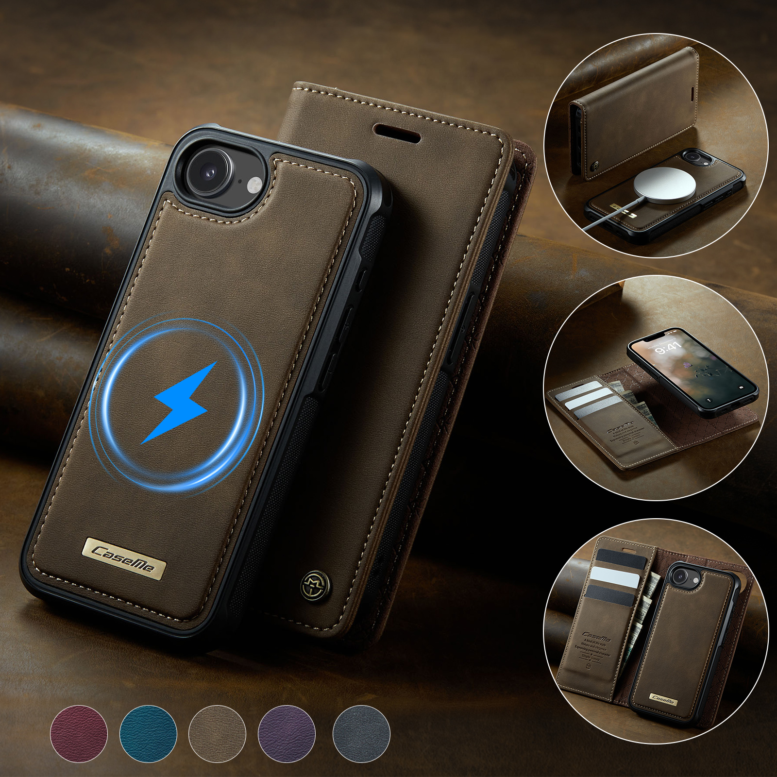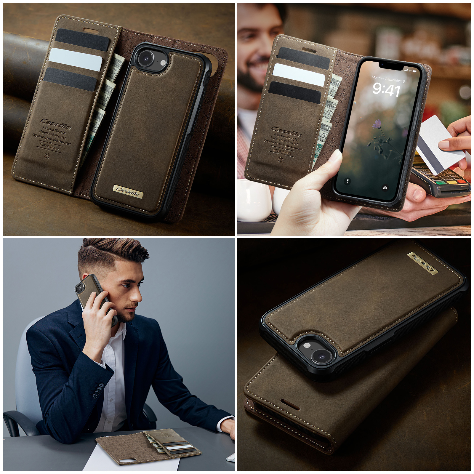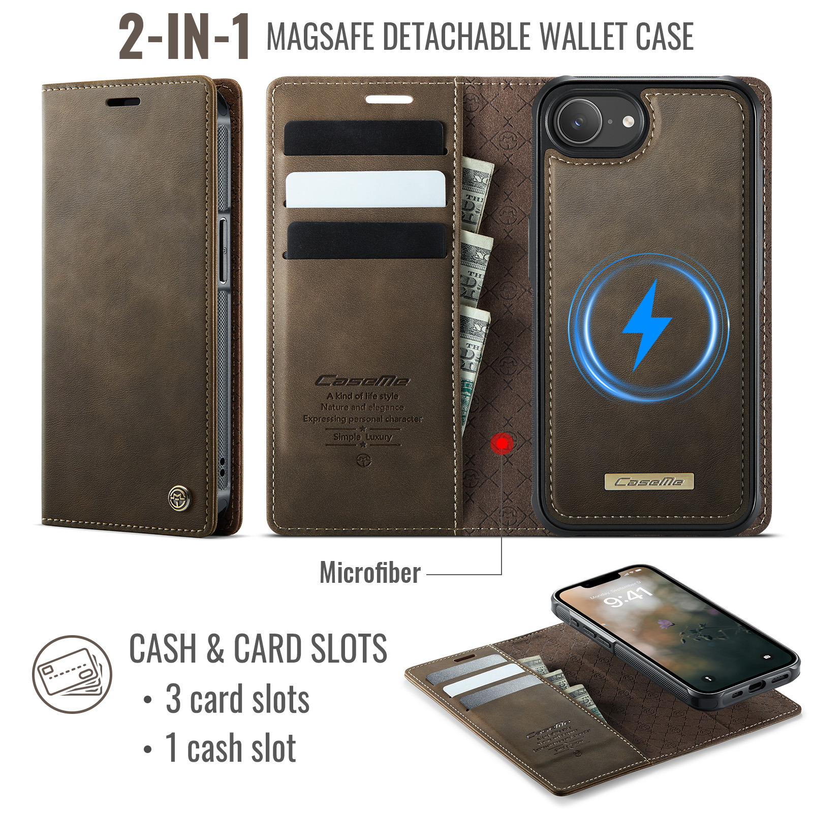 - Magnetic Detachable Wallet Design Built-in 3 card slots, and a cash pocket for credit cards, IDs, and cash. Magnetic detachable 2-in-1 design, can be used as a single shell or as a leather case