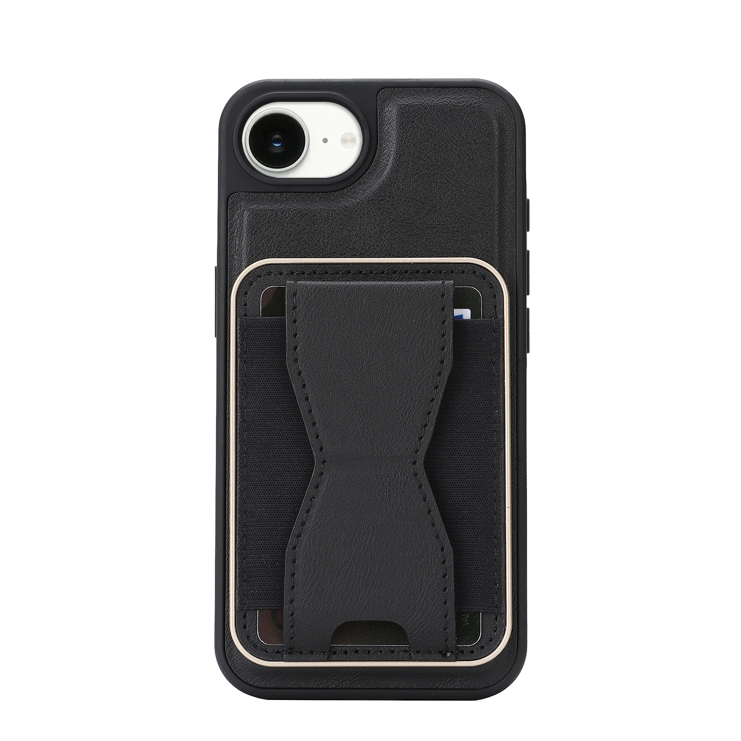 For iPhone 16e Case Compatible with MagSafe Leather Back Phone Cover with Detachable Card Holder Kickstand – Black