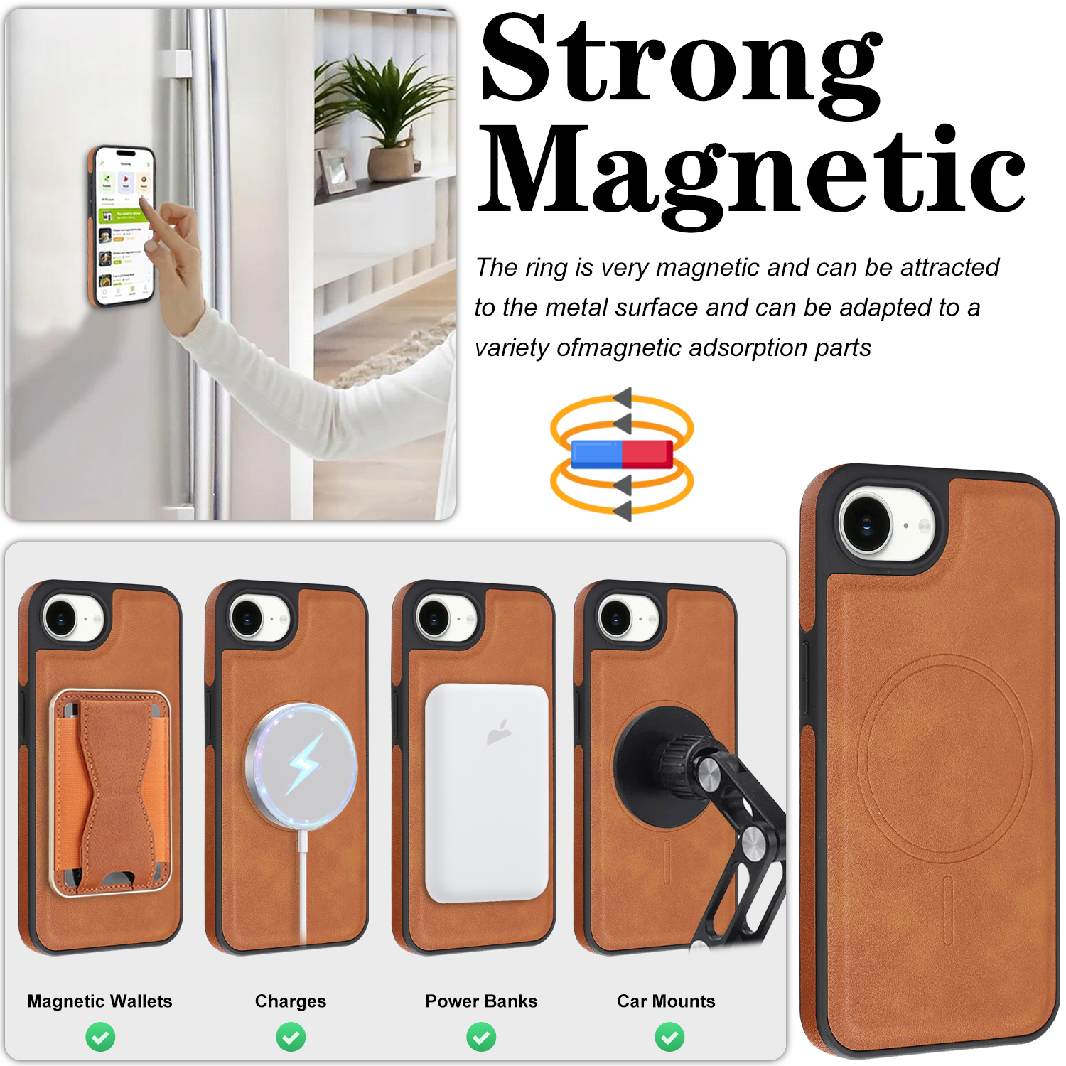 For iPhone 16e Case Compatible with MagSafe Leather Back Phone Cover with Detachable Card Holder Kickstand – Brown
