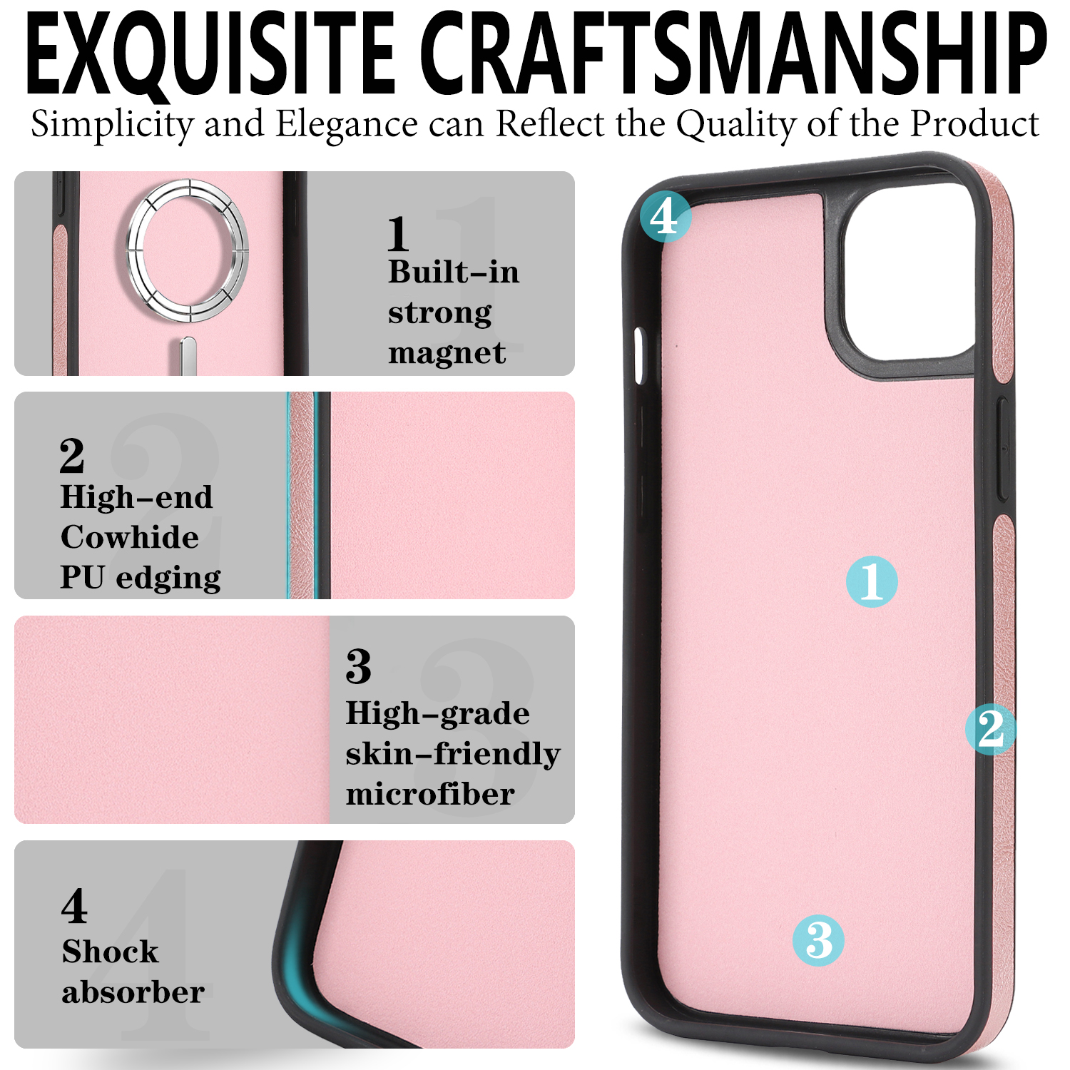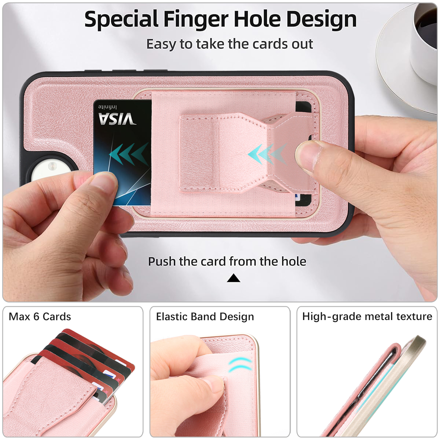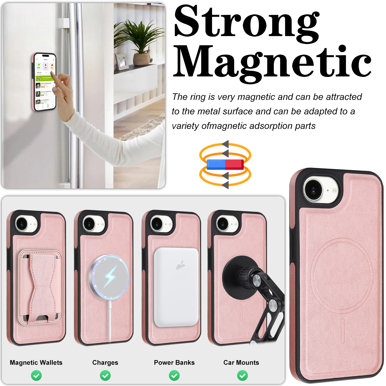 For iPhone 16e Case Compatible with MagSafe Leather Back Phone Cover with Detachable Card Holder Kickstand – Rose Gold