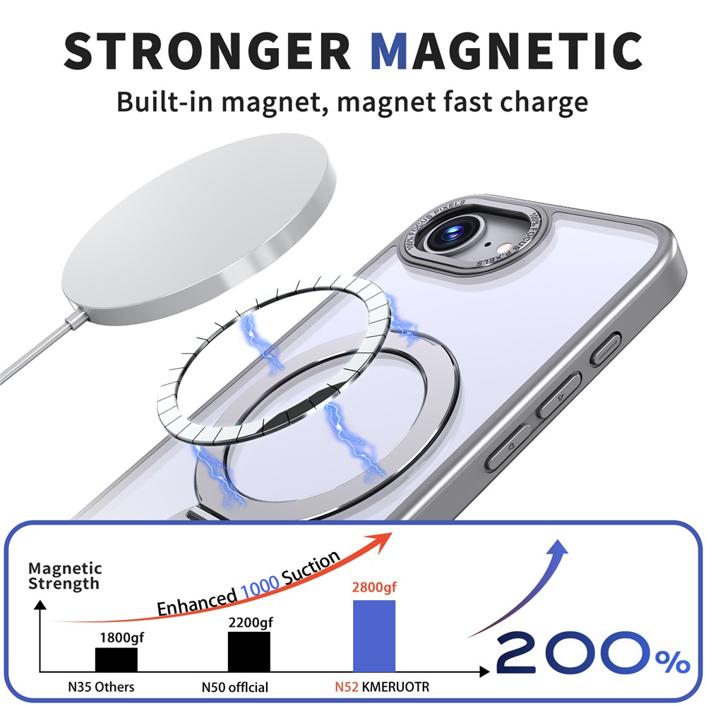 • Compatible with MagSafe Built-in magnetic ring ensures compatibility with MagSafe chargers and accessories, providing a secure and reliable connection