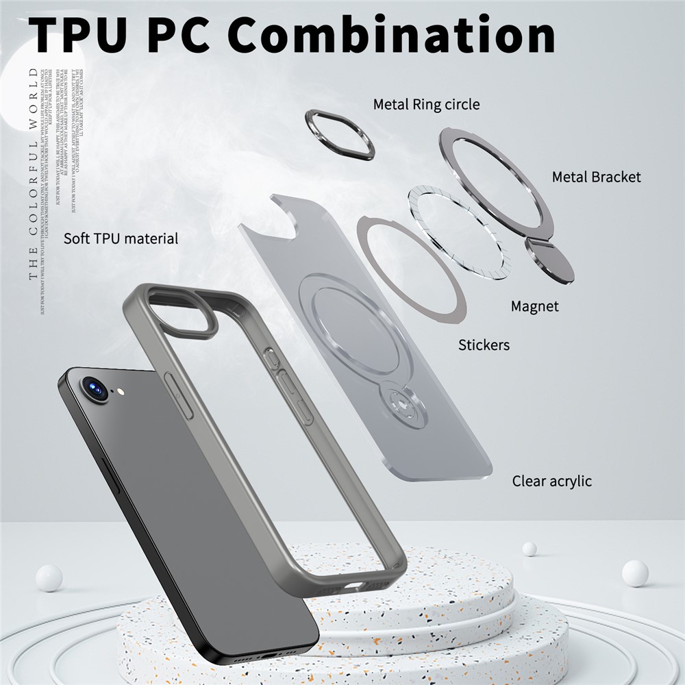 For iPhone 16e Case Compatible with MagSafe Ring Kickstand TPU PC Clear Phone Back Cover - Titanium Grey