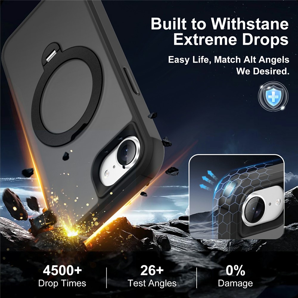 - Tail Rotatable Ring Kickstand Integrated magnetic ring kickstand enhances grip and comfort while offering multiple adjustable angles for hands-free viewing in portrait or landscape mode