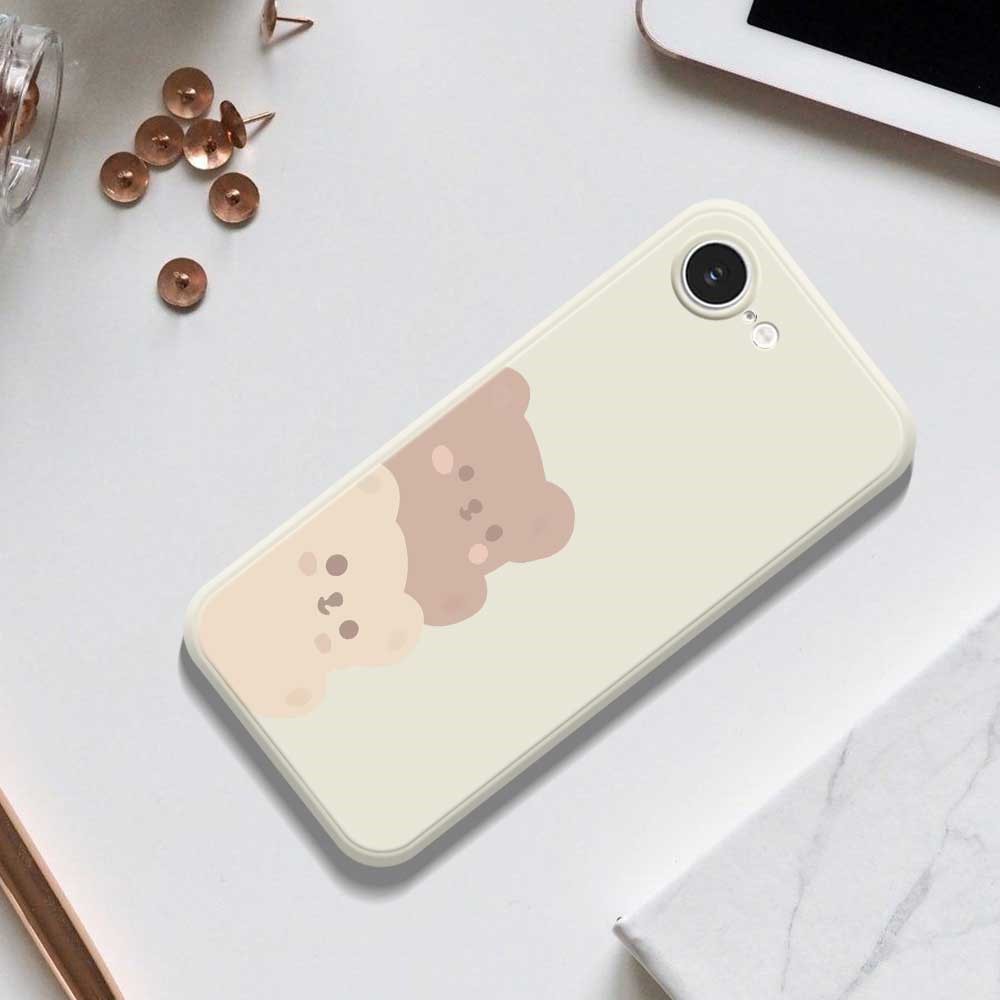 • For iPhone 16e Case Cute Bears Pattern Printing Straight Edge TPU Phone Back Cover - Beige
