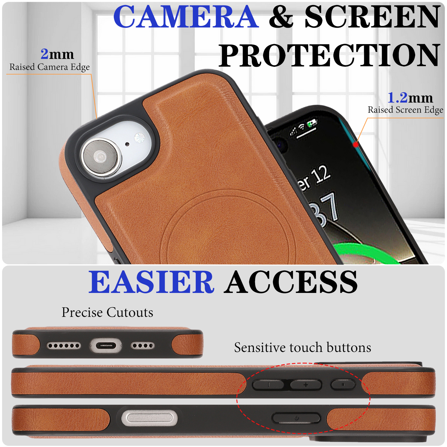 - Enhanced Screen and Lens Safety Raised edges provide 0.2mm protection for camera lenses and 1.2mm for the screen, safeguarding against surface contact and potential damage.