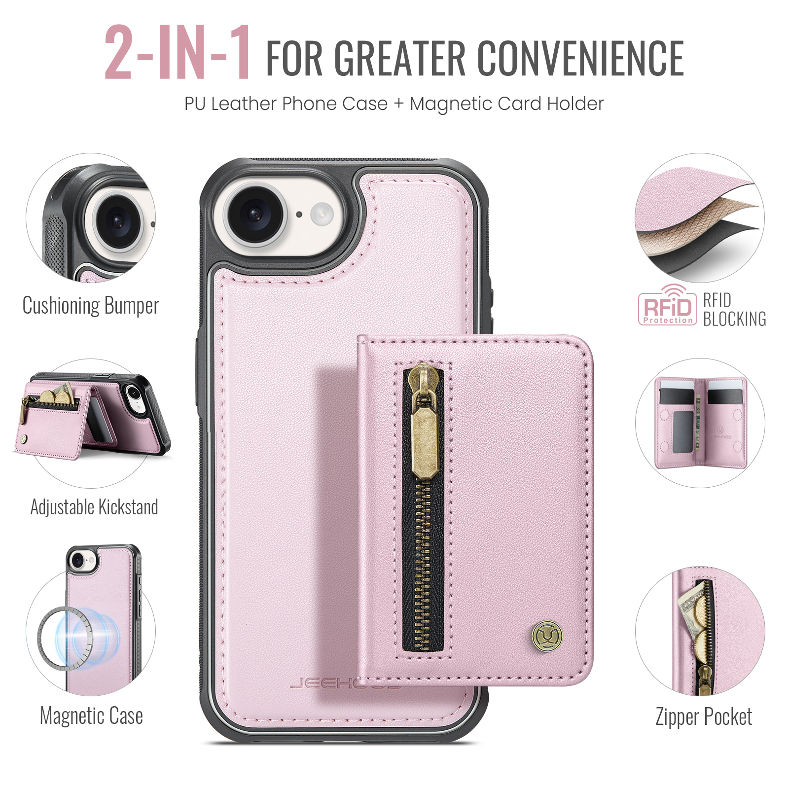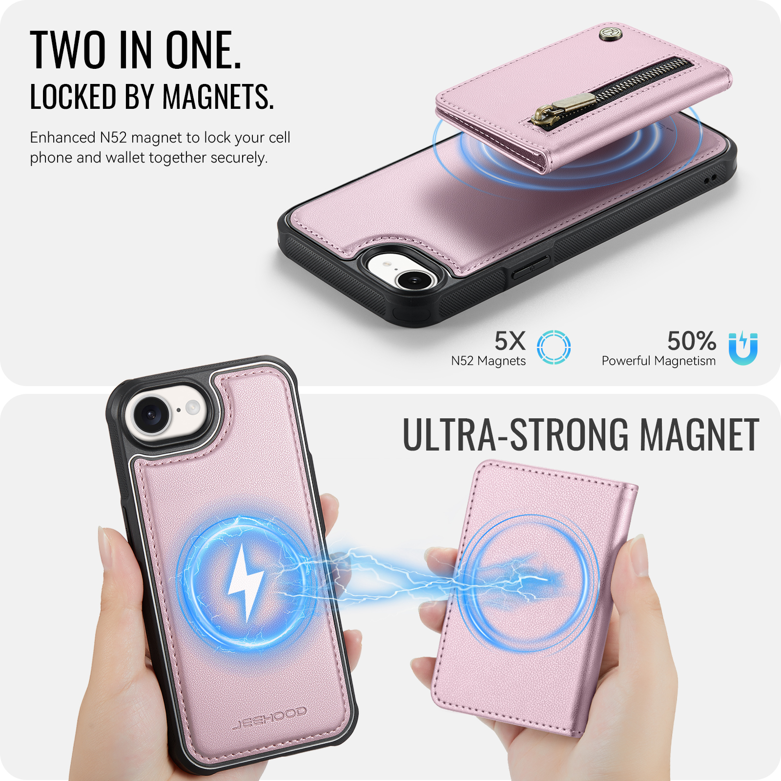 - Detachable Magnetic Design The card wallet and phone case can be magnetically attached or detached, and can be used separately.