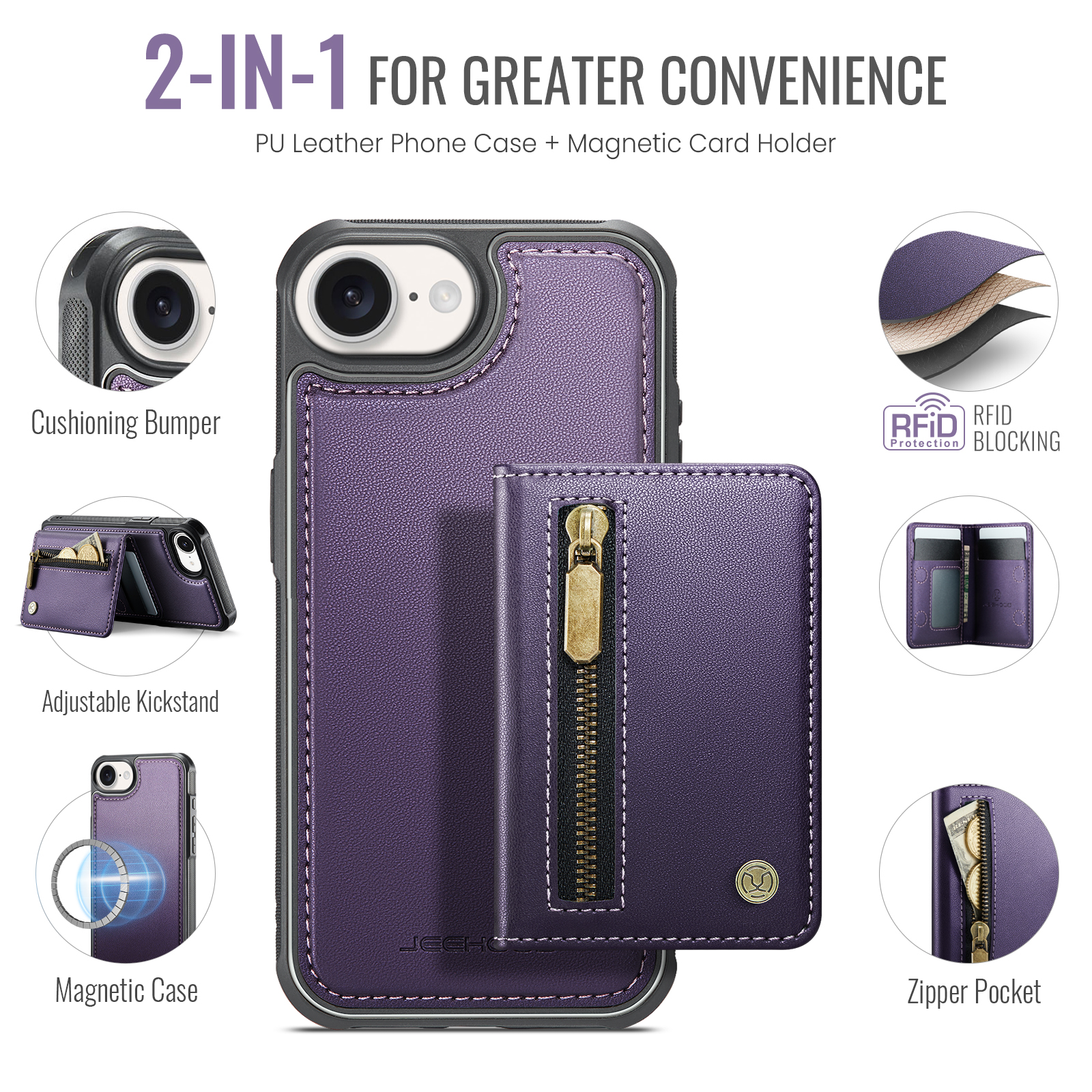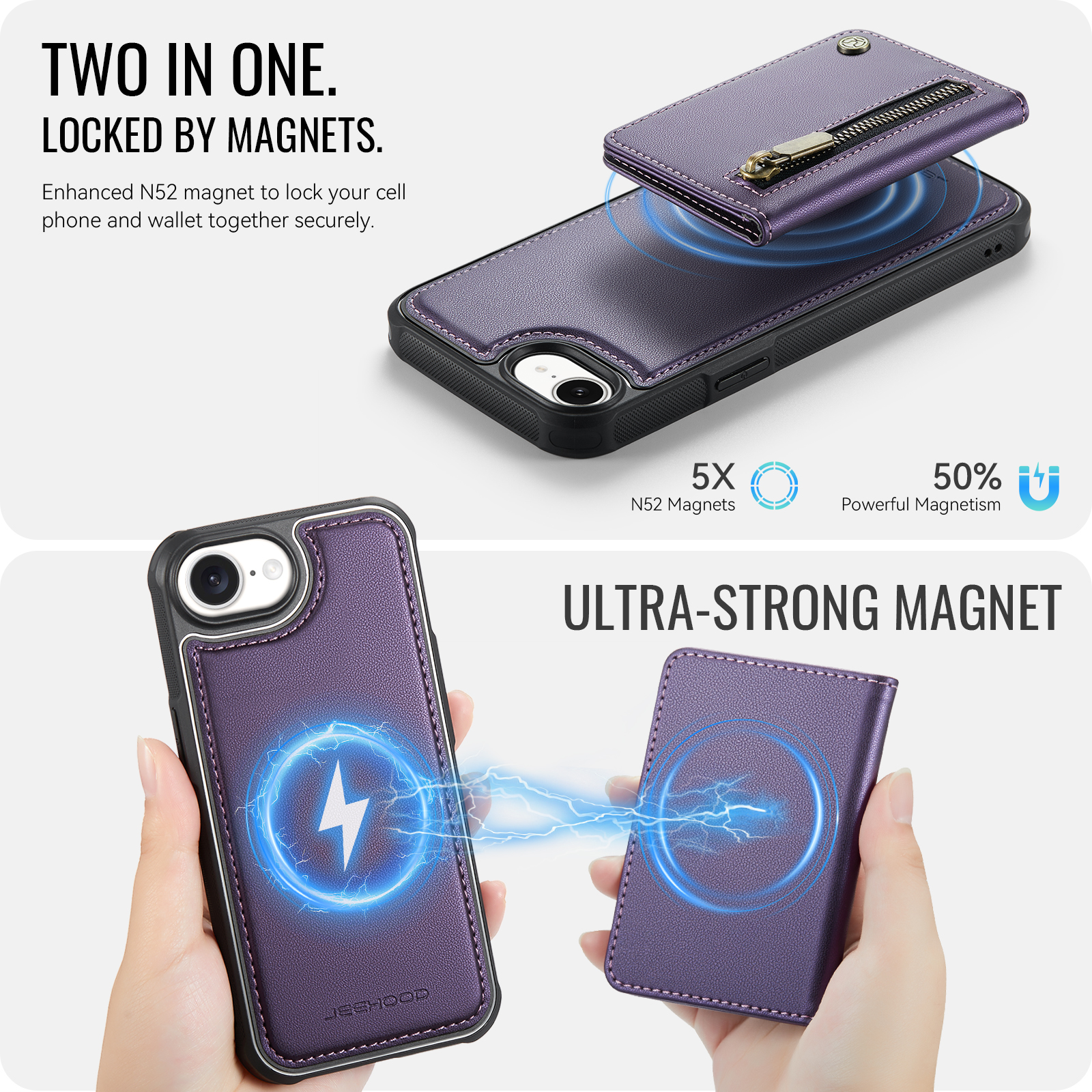 - Detachable Magnetic Design The card wallet and phone case can be magnetically attached or detached, and can be used separately.