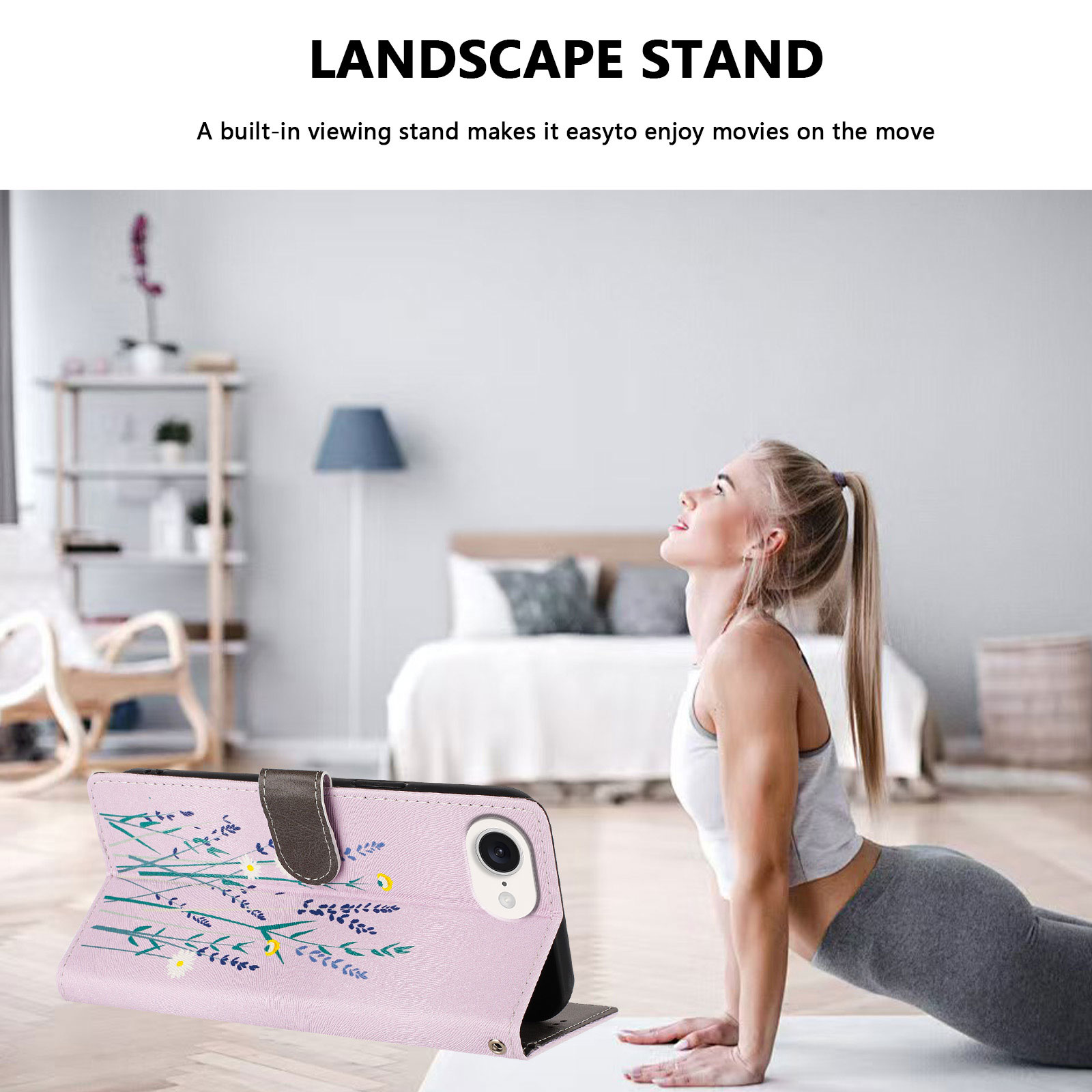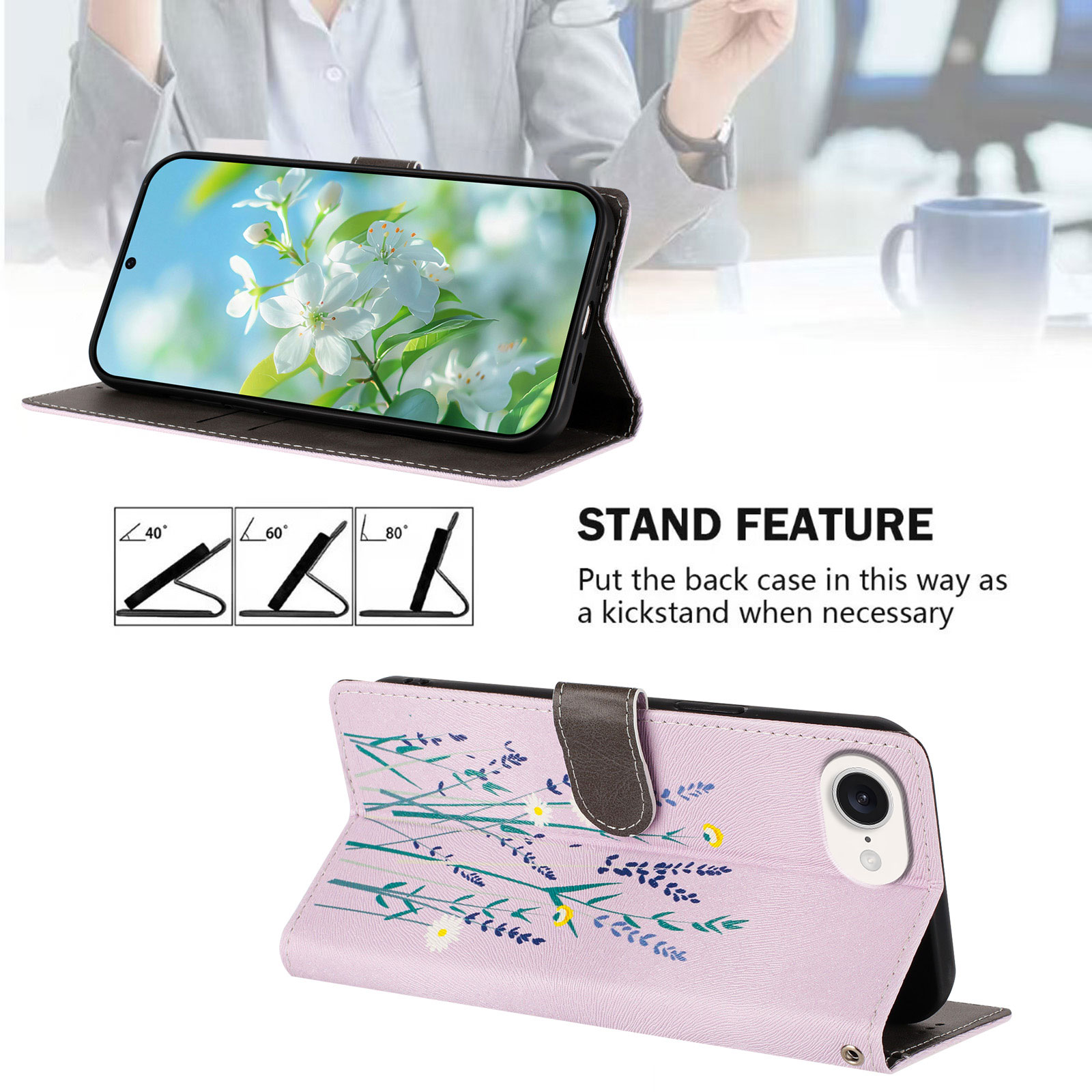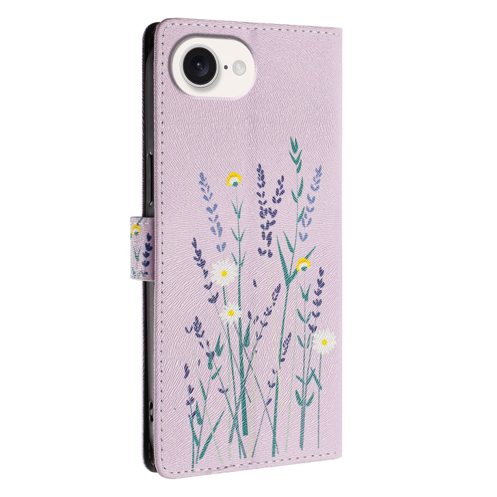 For iPhone 16e Case Pattern Print PU Leather Wallet Phone Cover with Wrist Strap – Lavender
