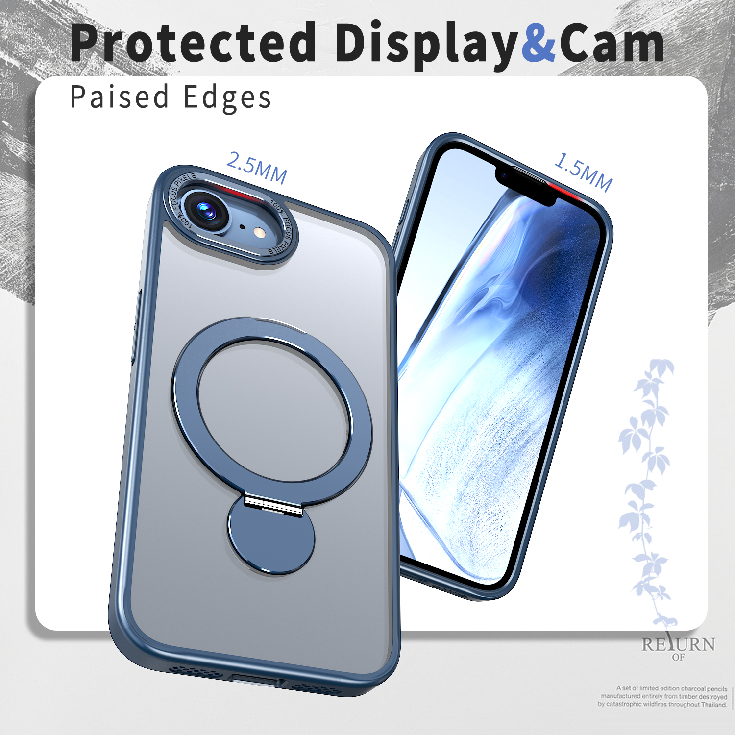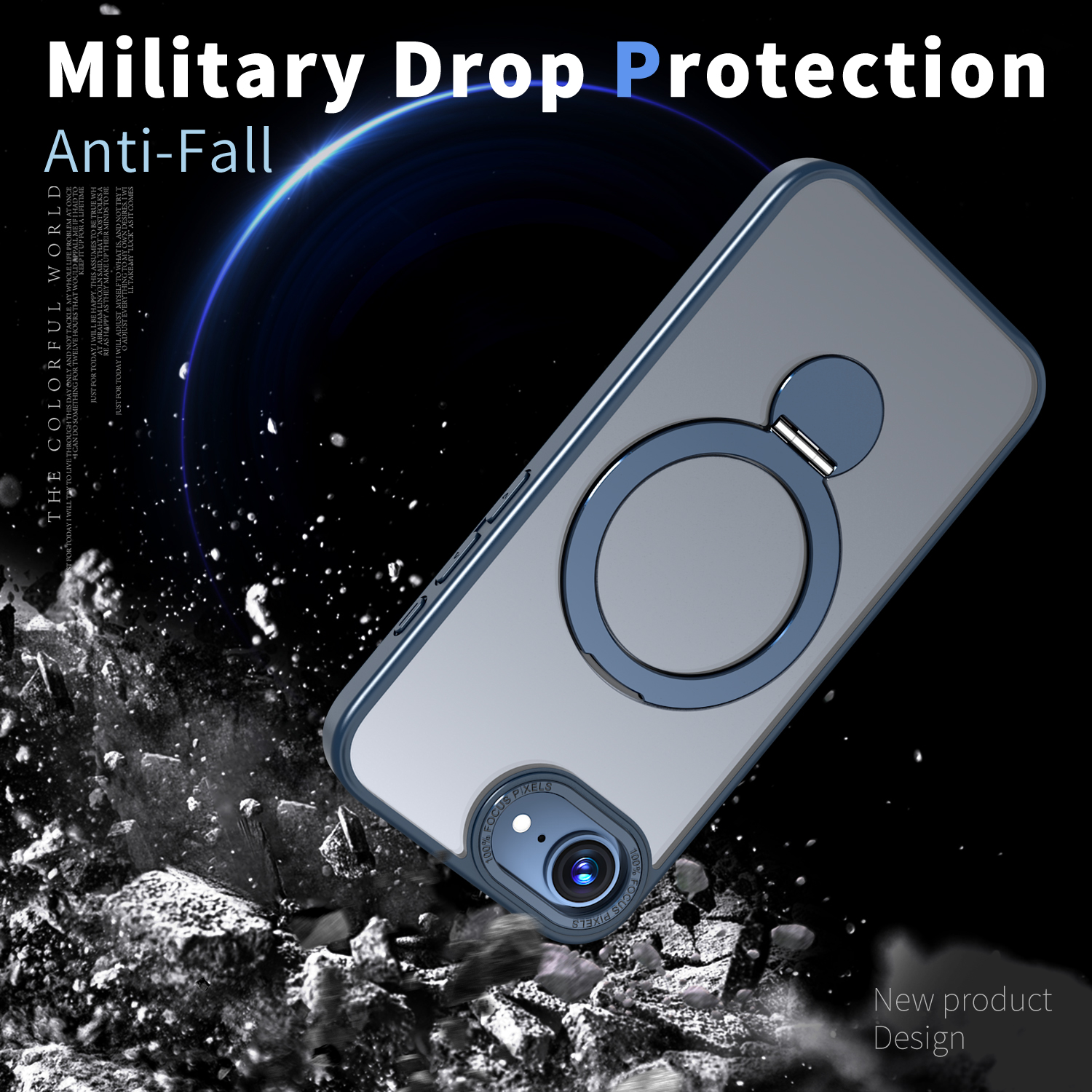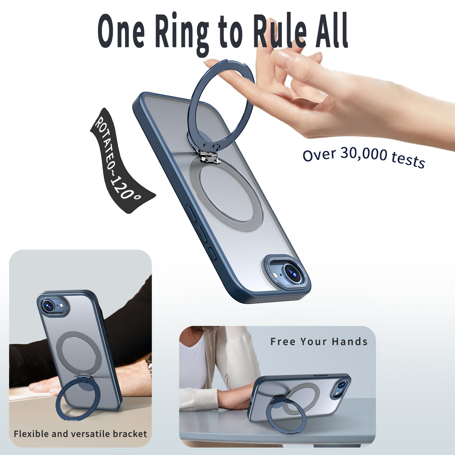 For iPhone 16e Case Rotating Kickstand Skin-touch TPU + PC Phone Cover Compatible with MagSafe – Blue