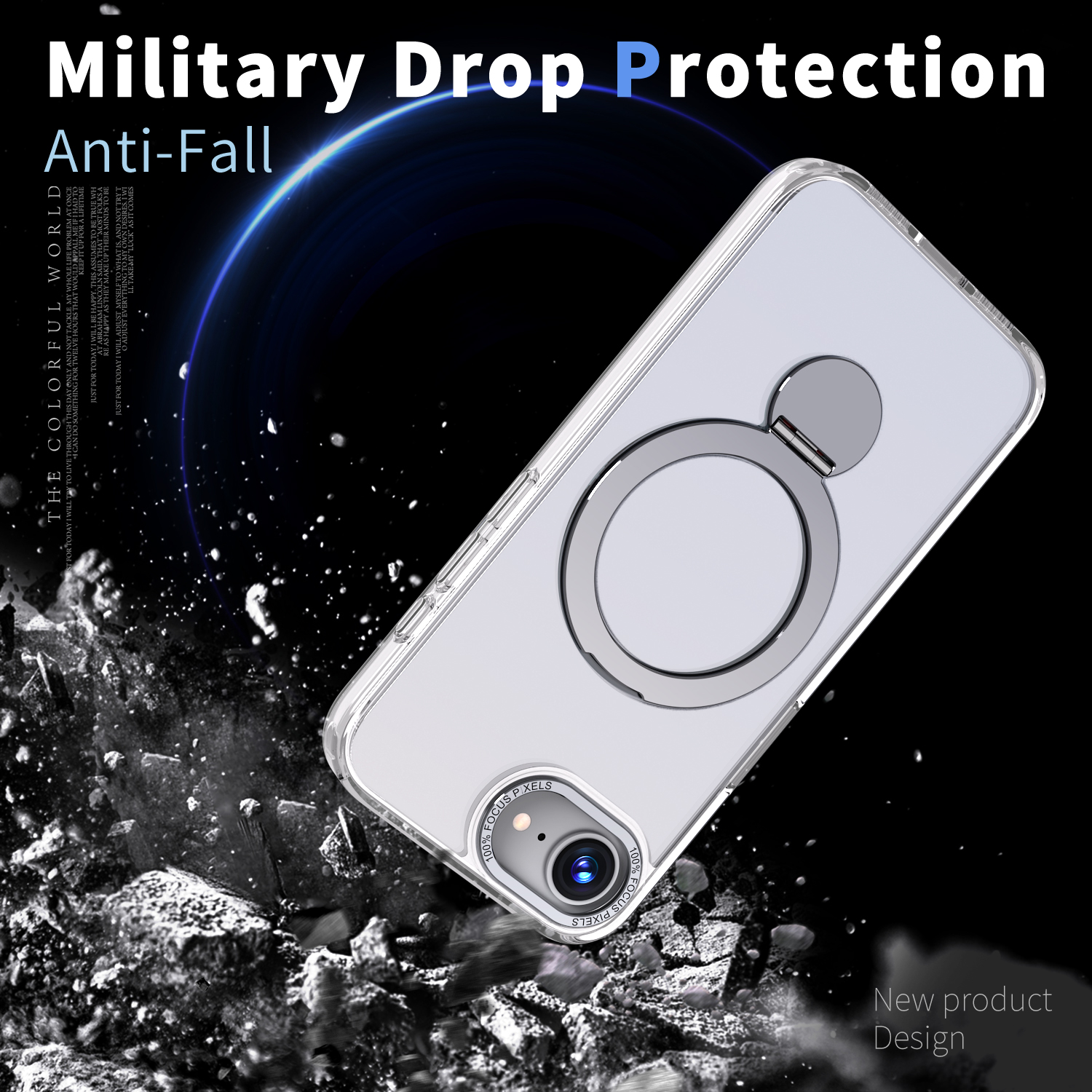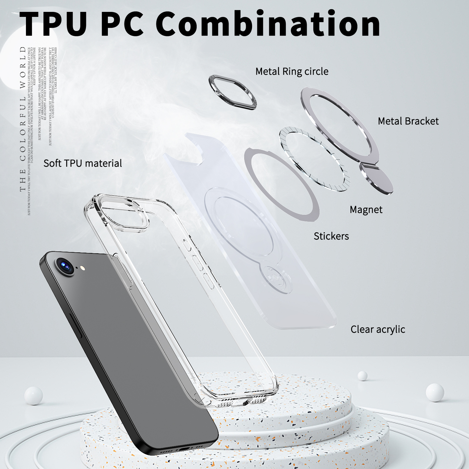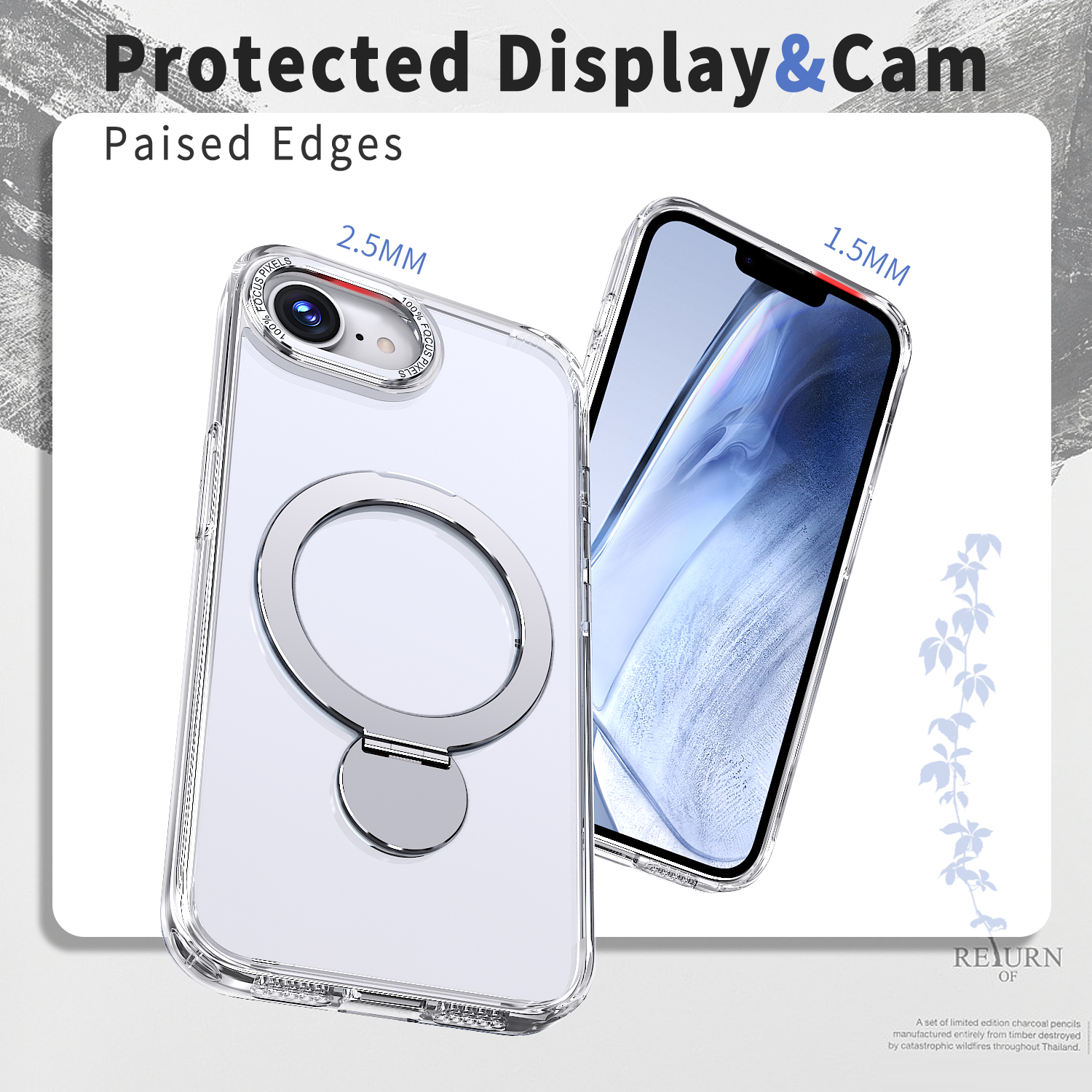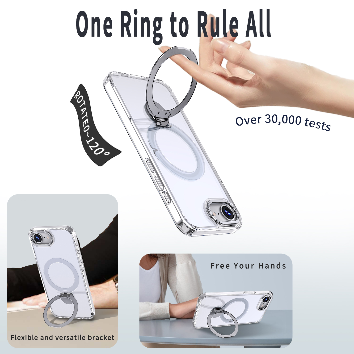 For iPhone 16e Case Rotating Kickstand Skin-touch TPU + PC Phone Cover Compatible with MagSafe – Transparent