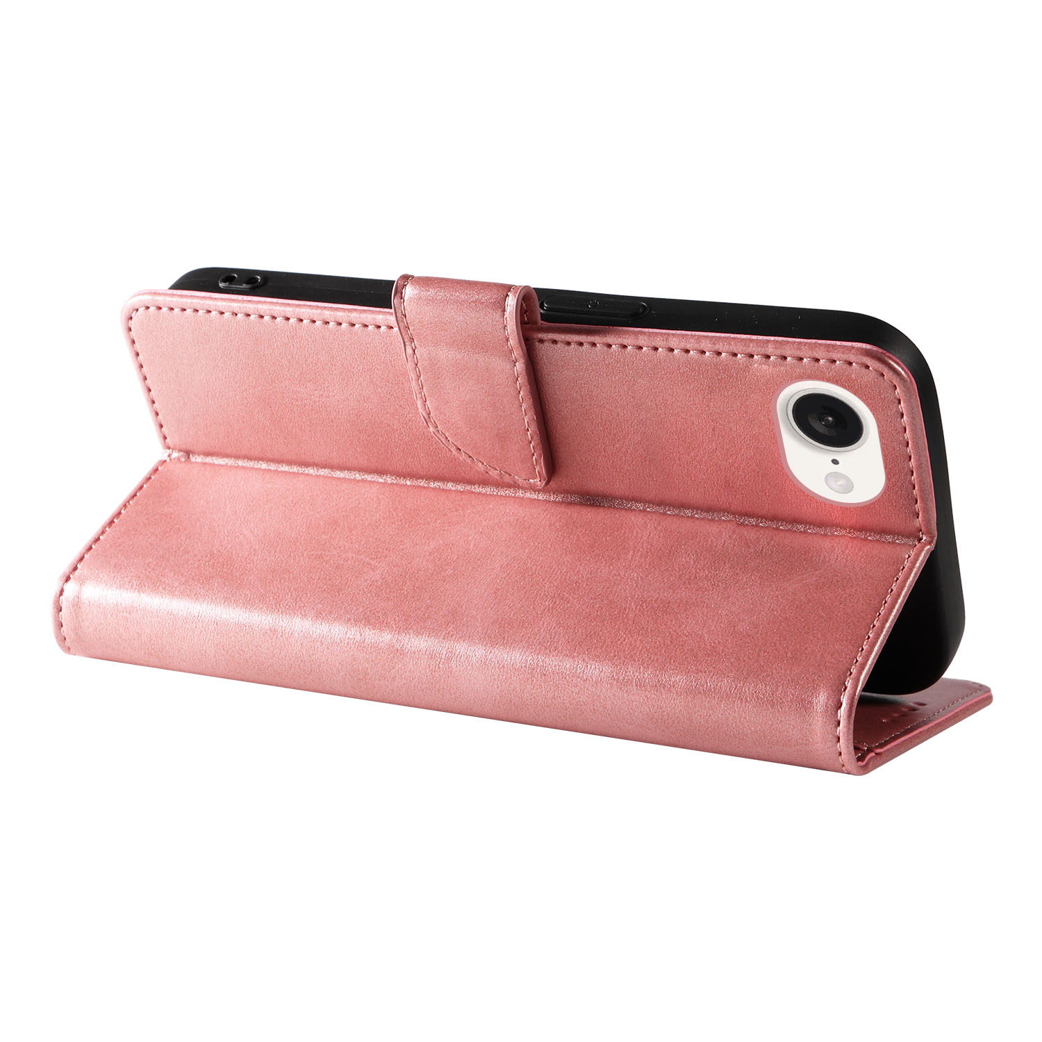 For iPhone 16e Case with 2Pcs Tempered Glass WANLONFENG WN Series Calf Texture Leather Phone Cover Big Cutouts – Pink